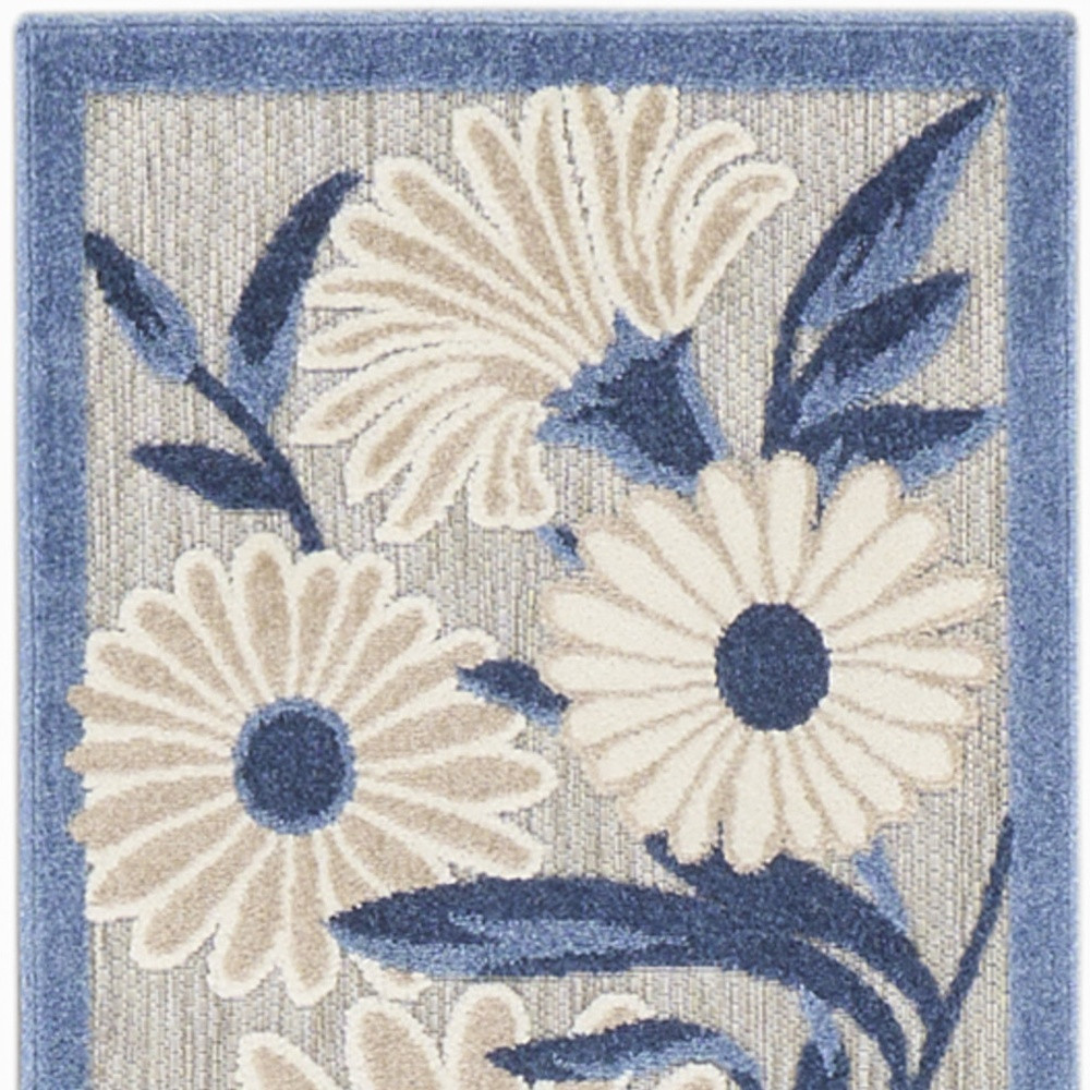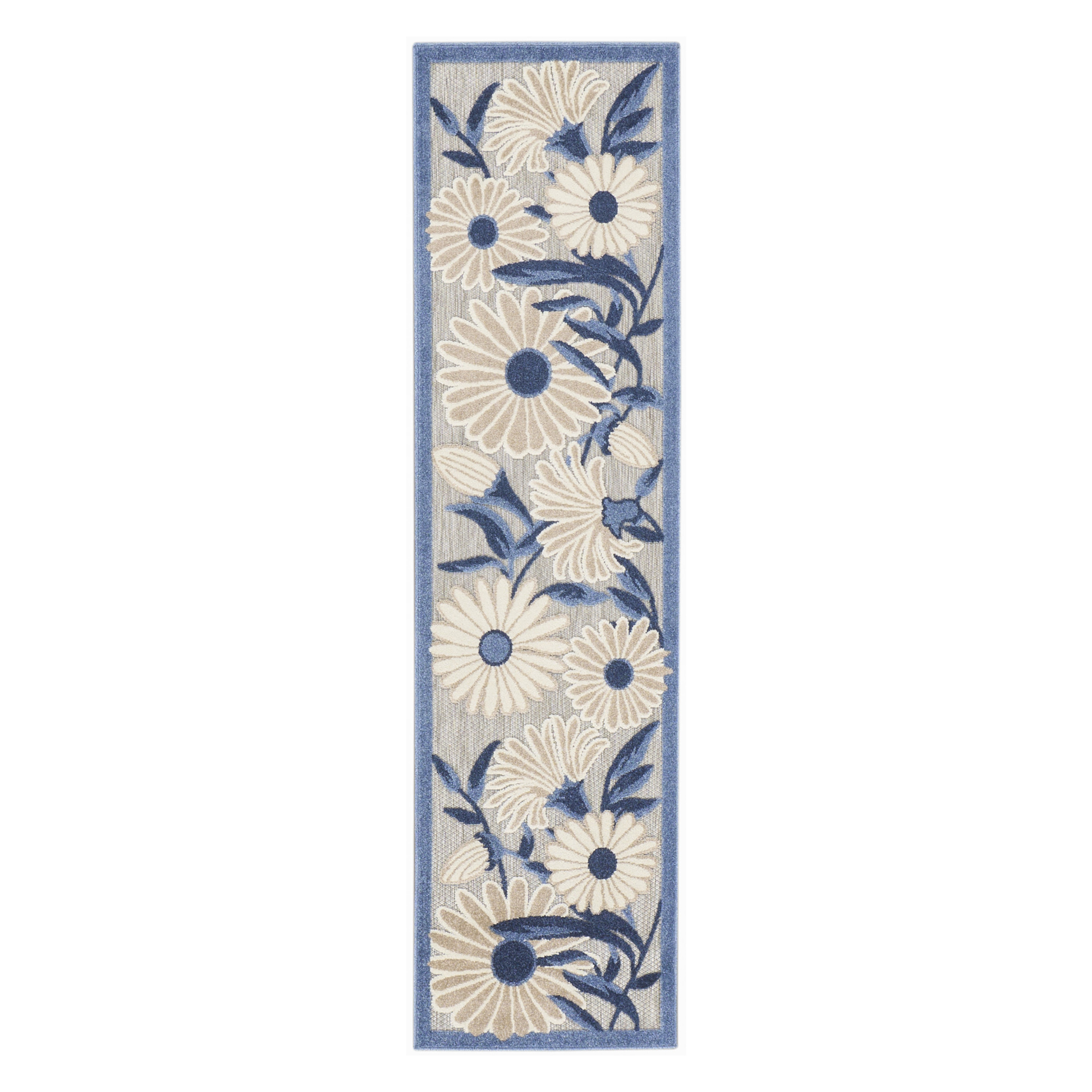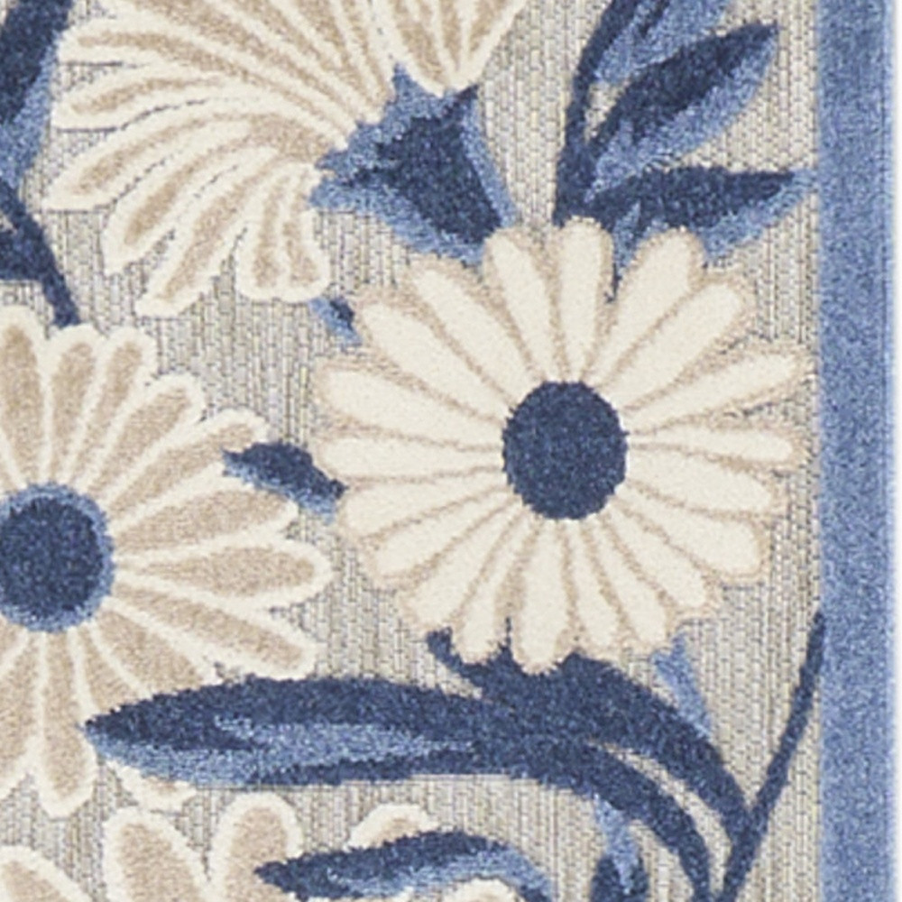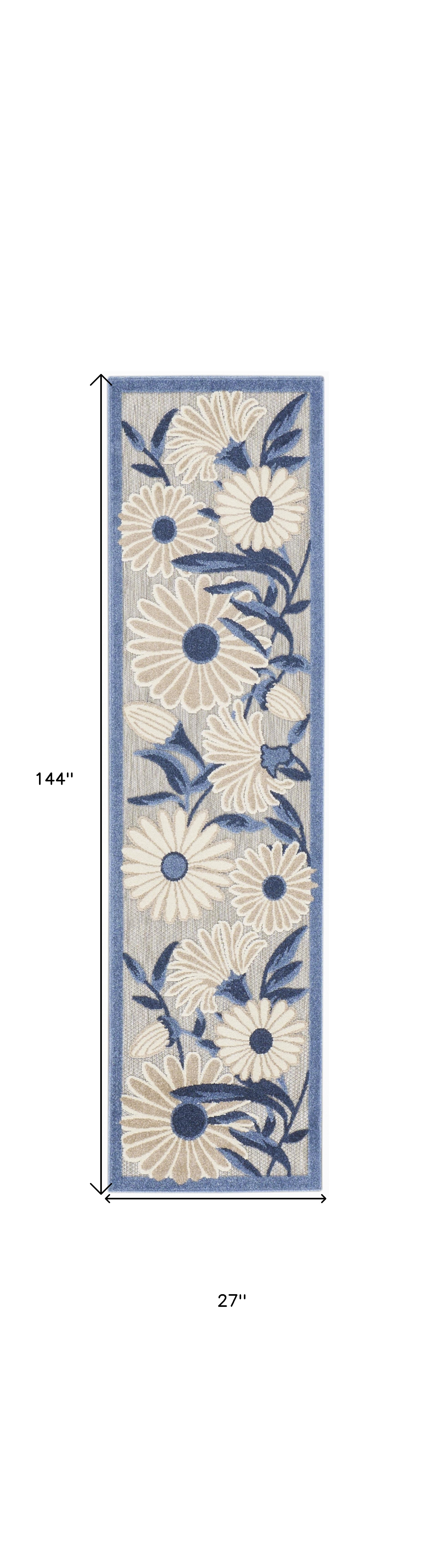 This 12-foot blue and gray floral indoor outdoor runner rug, is a great way to add warmth to a room. This runner shaped rug features a floral design that will work well both indoors or out. A classic shape marries with good looking design for your living room, hall, bedroom, porch, patio, or poolside. Ideal for outdoor spaces or high traffic areas with kids and pets, this rug is made from heavy duty polypropylene that is stain resistant to help repel water, dirt, and stains. Versatile in use, durable, and easy to maintain, this rug is an ideal solution to add a decorative and inviting touch to your indoor or outdoor space. 27-inch h x 144-inch w x 0.25-inch d.