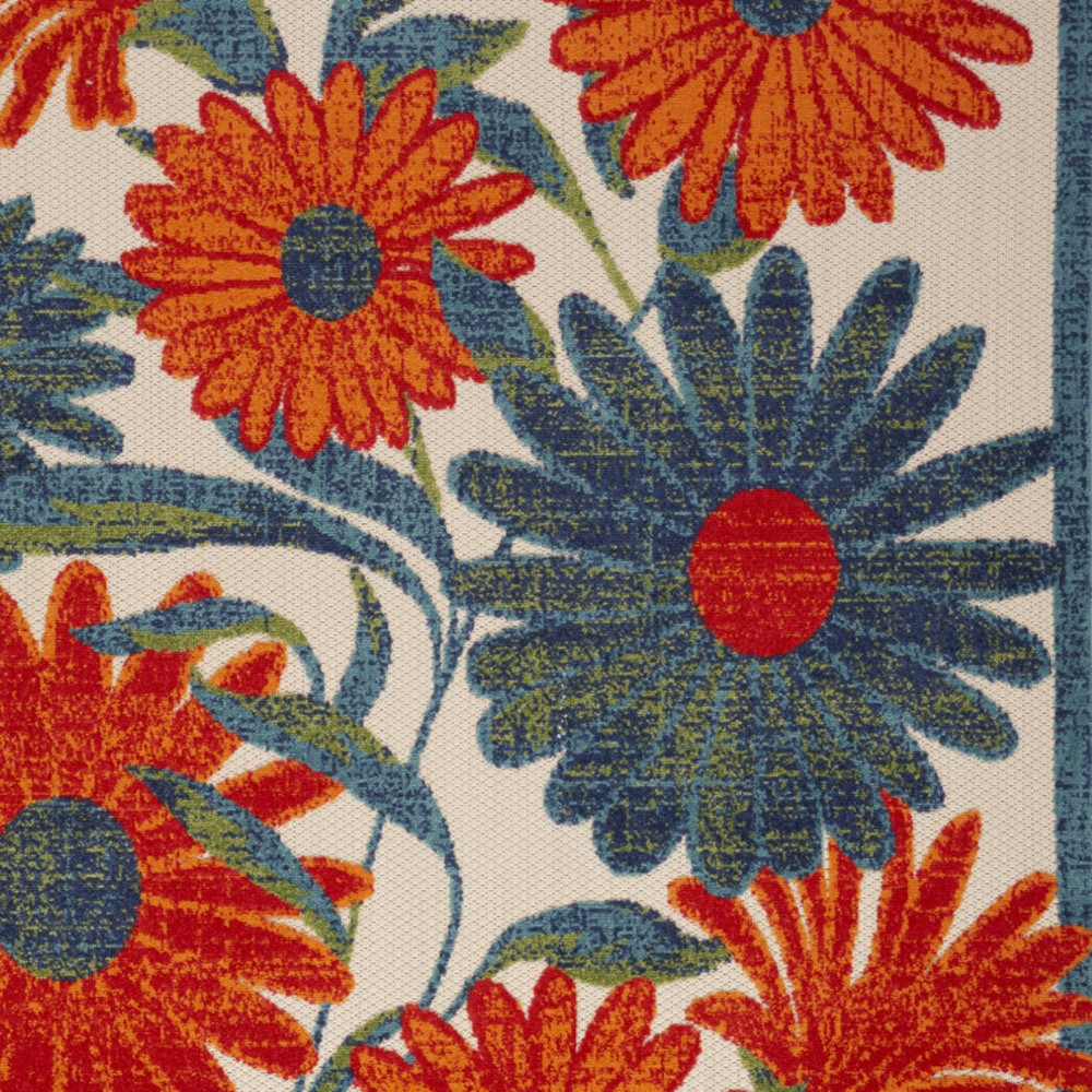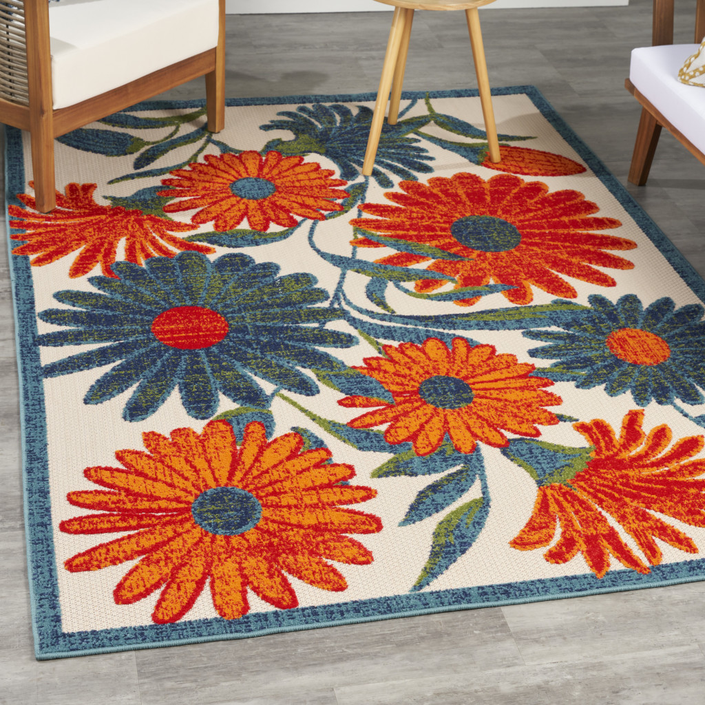 floral indoor outdoor area rug, indoor outdoor area rug, outdoor area rug, blue orange green floral indoor, ivory blue orange green |