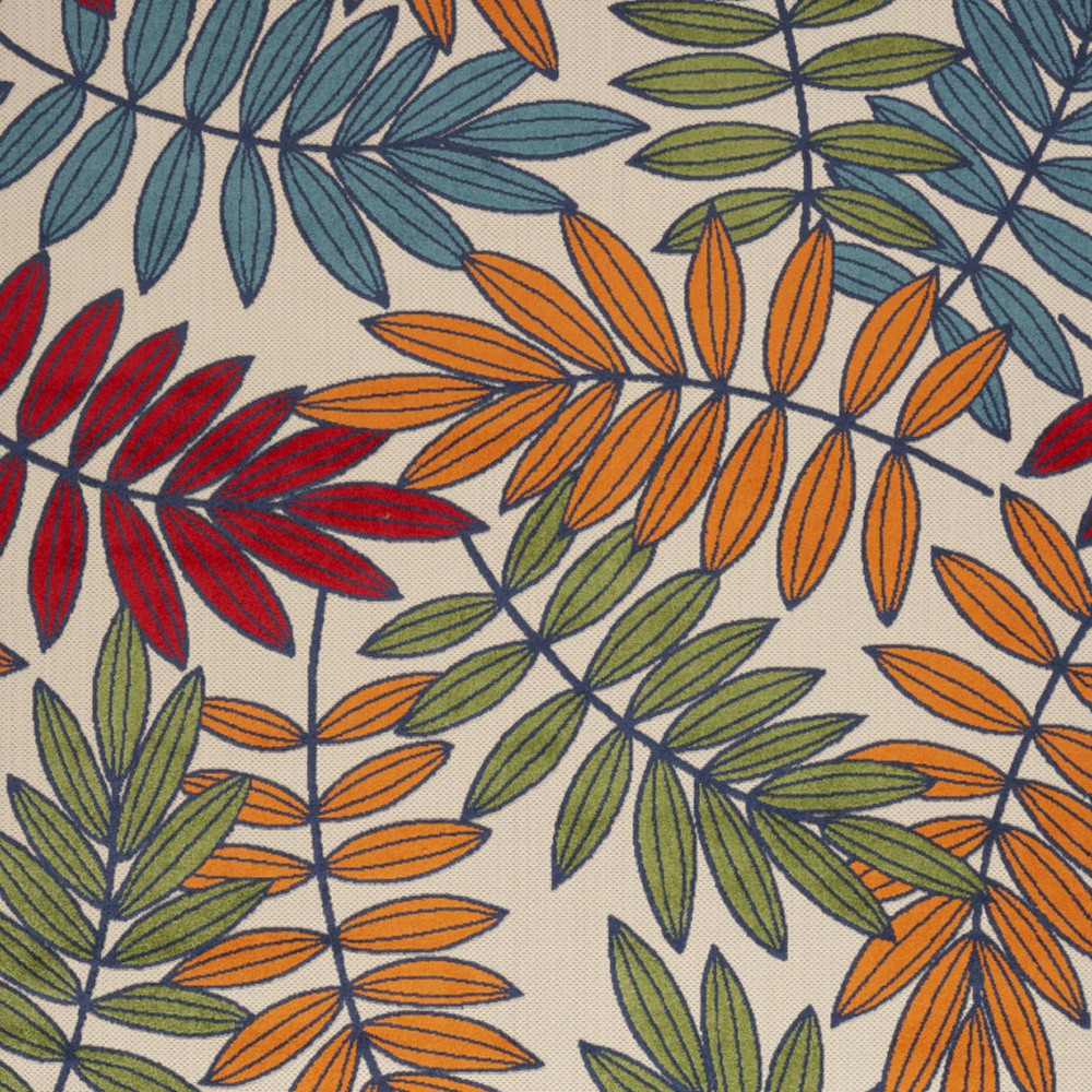 Add some artistry to your room with this 10-foot x 14-foot ivory yellow orange green and blue palm leaf indoor outdoor area rug. This rectangle shaped rug features a palm leaf design that will work well both indoors or out. A classic shape marries with good looking design for your living room, hall, bedroom, porch, patio, or poolside. Ideal for outdoor spaces or high traffic areas with kids and pets, this rug is made from heavy duty polypropylene that is stain resistant to help repel water, dirt, and stains. Makes a great way to dress up your patio, porch, or poolside, but also works well as a durable and easy to maintain option in the kitchen, family room, or mudroom. 120-inch h x 168-inch w x 0.25-inch d.