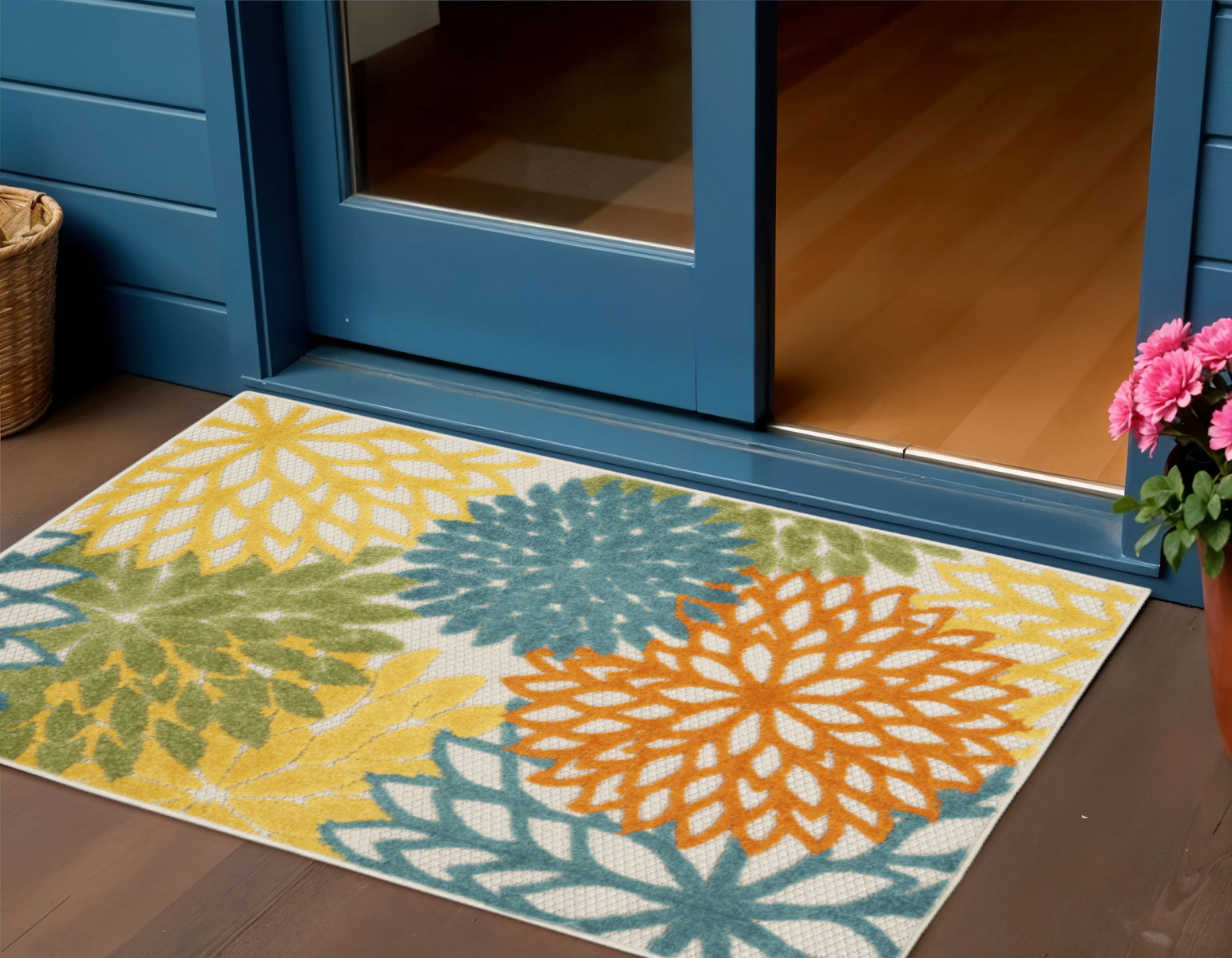floral indoor outdoor area rug, indoor outdoor area rug, outdoor area rug, yellow orange blue floral indoor, orange blue floral indoor |