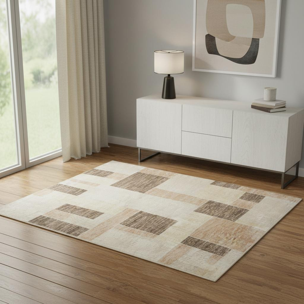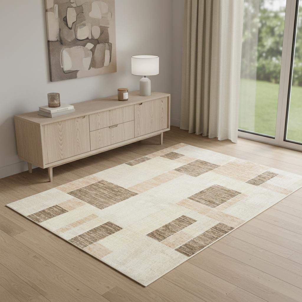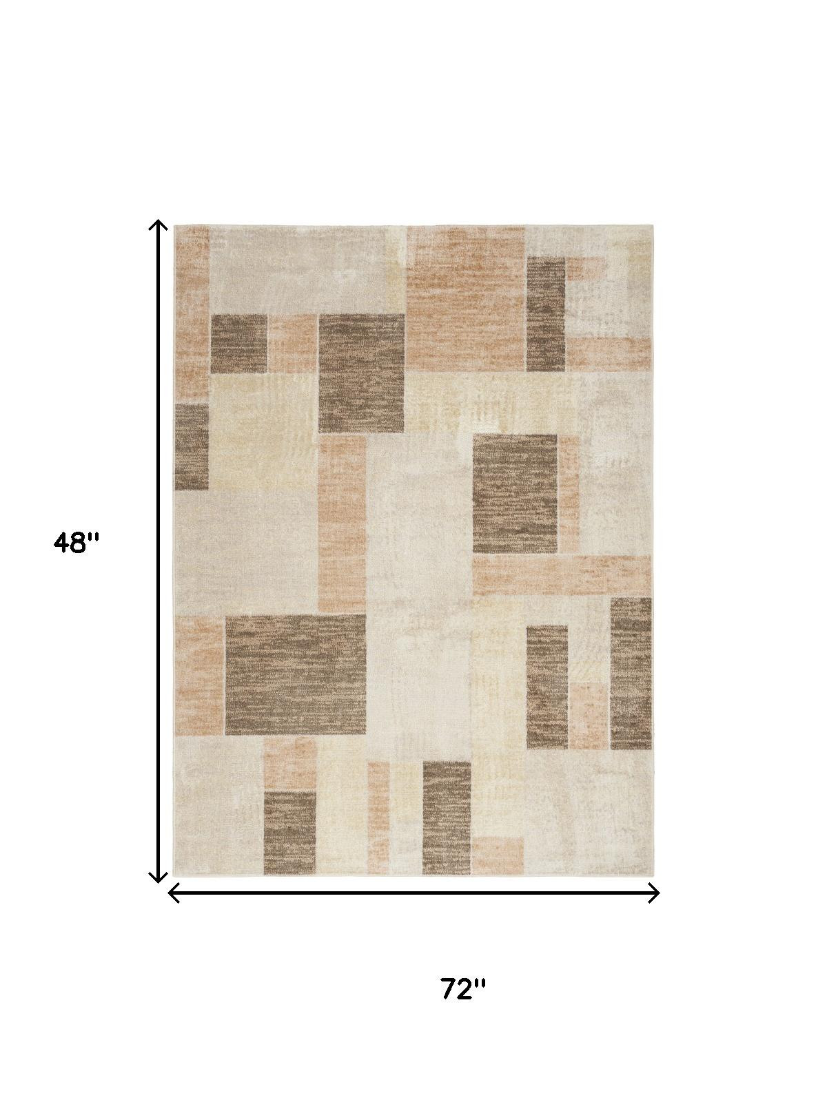 Set an inviting tone in your space with this 4-foot x 6-foot beige geometric power loom area rug. This rectangle shaped rug features a geometric design in beige to give it visual interest. A classic shape marries with good looking design for your space the coloring of this rug adds a delightfully neutral tone to your home and will easily match with most any decor. Place this area rug against a hardwood or tile floor and it will enliven your living space with style and sophistication. 48-inch H x 72-inch W x 0.25-inch D
