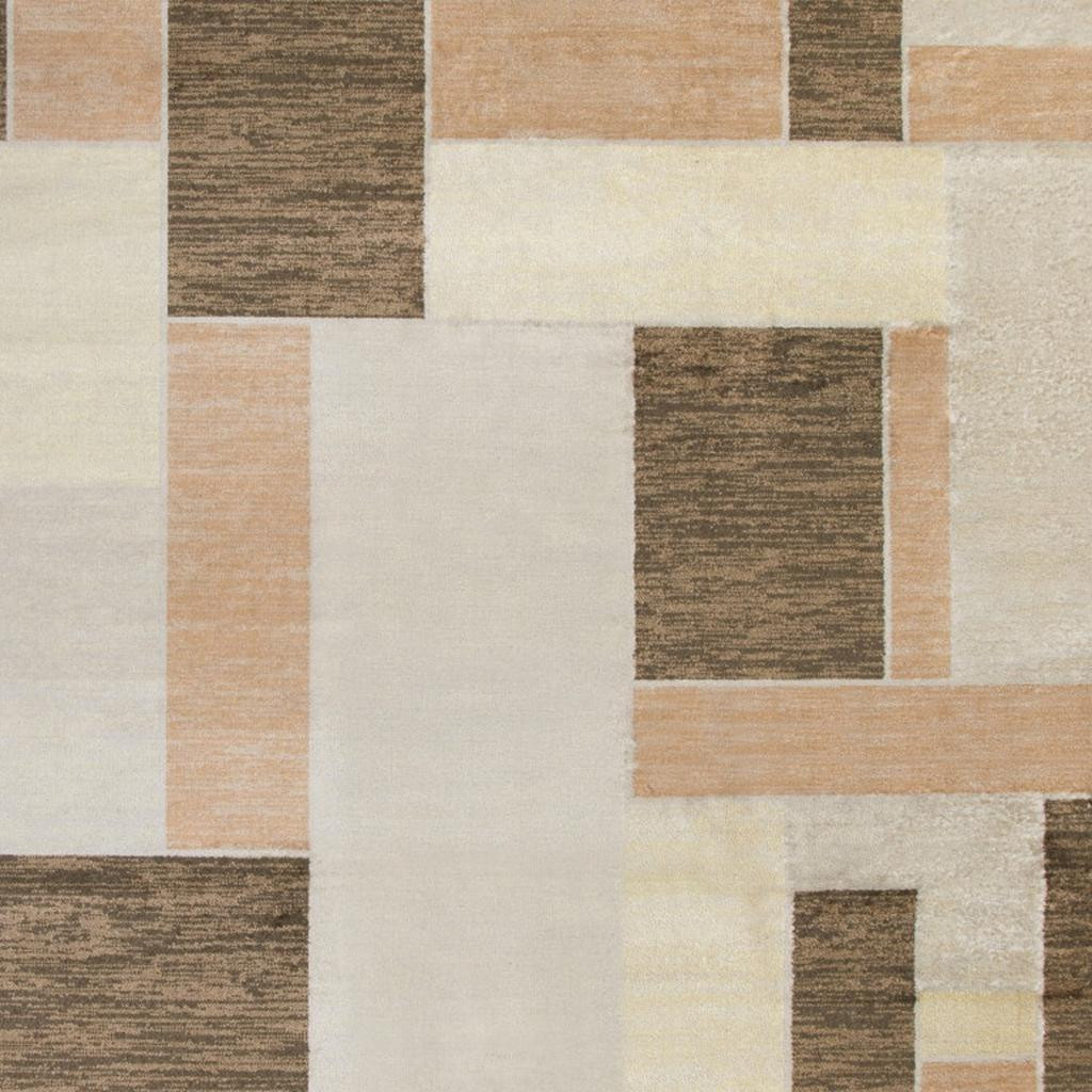 Set an inviting tone in your space with this 9-foot x 12-foot beige brown and tan geometric area rug. Ideal for spaces with kids and pets, this rug is stain resistant to help repel dirt and spilled liquids. Built to last, this rug crafted from polyester fibers is known for its durability and long lasting appeal. Rugs are a great way to showcase your style, hide imperfections, warm your home and reduce noise. This larger sized, modern styled rug is ready to create a focal point or statement piece in your room. 108-inch h x 144-inch w x 0.25-inch d.