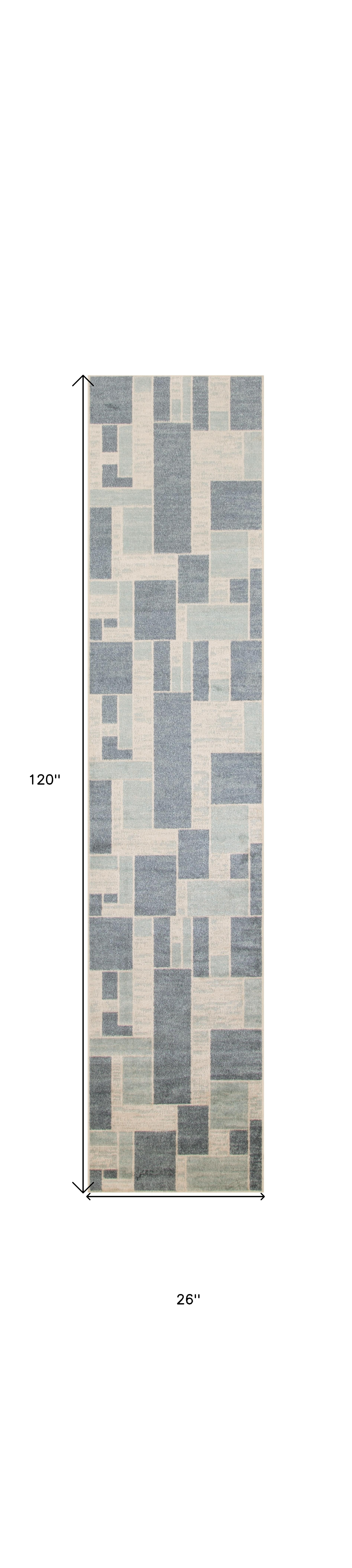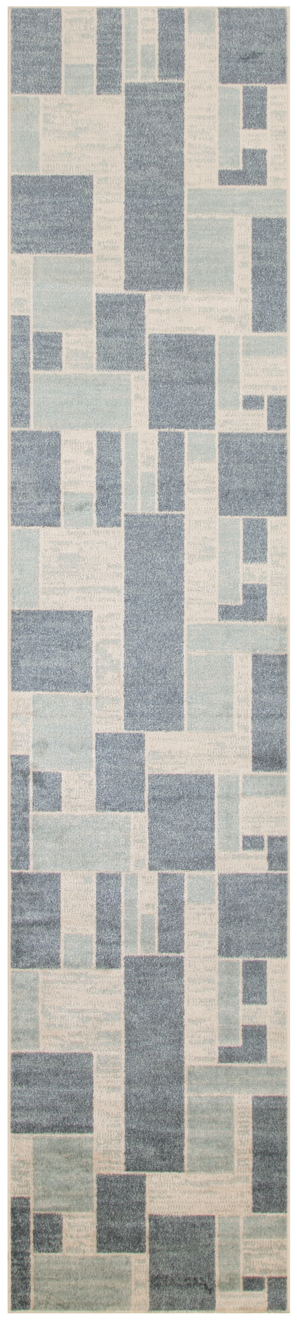 Add great coloration and comfortable texture to your space with this 10-foot blue and ivory geometric washable runner rug. Built to last, this rug crafted from polyester fibers is known for its durability and long lasting appeal. Rugs are a great way to showcase your style, hide imperfections, warm your home and reduce noise. This rectangular shaped rug features a abstract design that will add a functional and decorative accent to your space. This contemporary style runner makes a great accent for the hallway, in front of cabinets, in the laundry room, or any other space you need a narrow and long rug. 26-inch h x 120-inch w x 0.25-inch d.