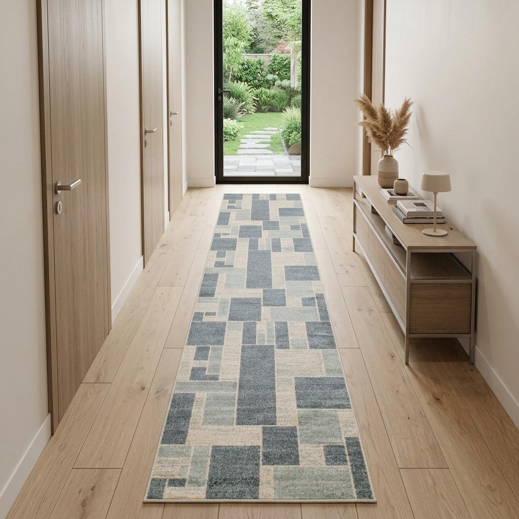power loom washable runner rug, loom washable runner rug, washable runner rug, ivory geometric power loom washable, blue ivory geometric power loom |