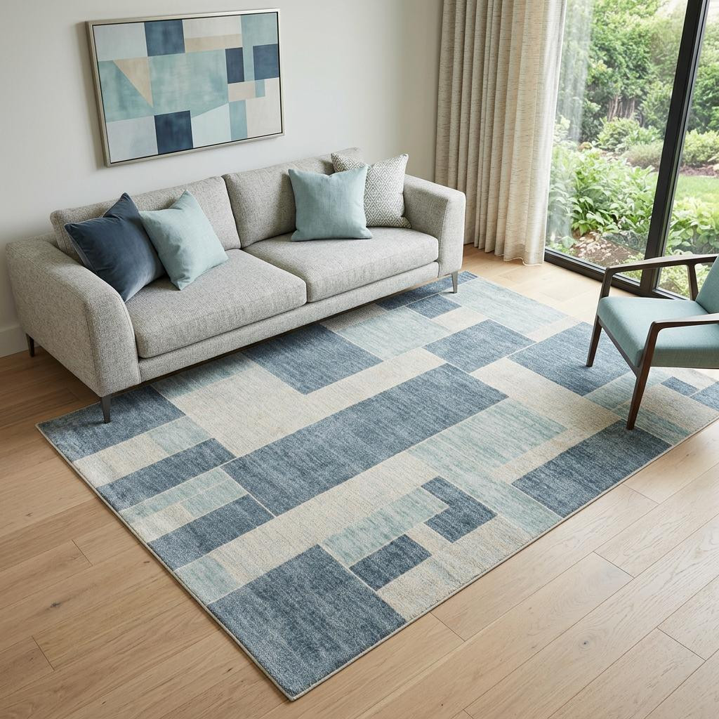 loom washable area rug, power loom washable area rug, washable area rug, ivory geometric power loom washable, blue ivory geometric power loom |