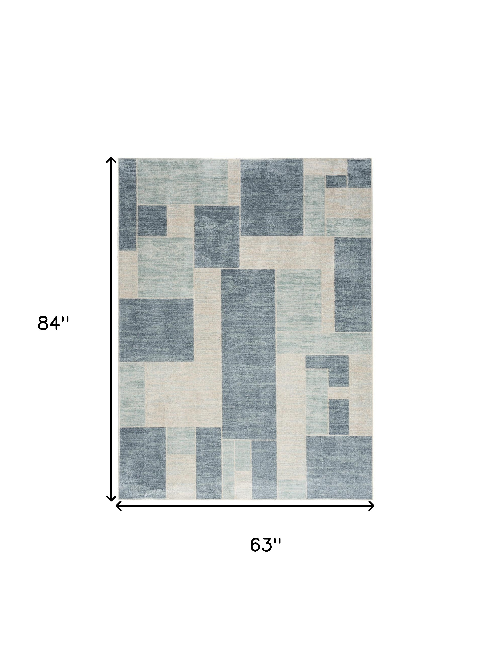 Add great coloration and comfortable texture to your space with this 5-foot x 7-foot blue and ivory geometric power loom washable area rug. This rectangle shaped rug features a geometric design in blue and ivory to give it visual interest. A classic shape marries with good looking design for your space place this area rug against a hardwood or tile floor and it will enliven your living space with style and sophistication. 63-inch H x 84-inch W x 0.25-inch D