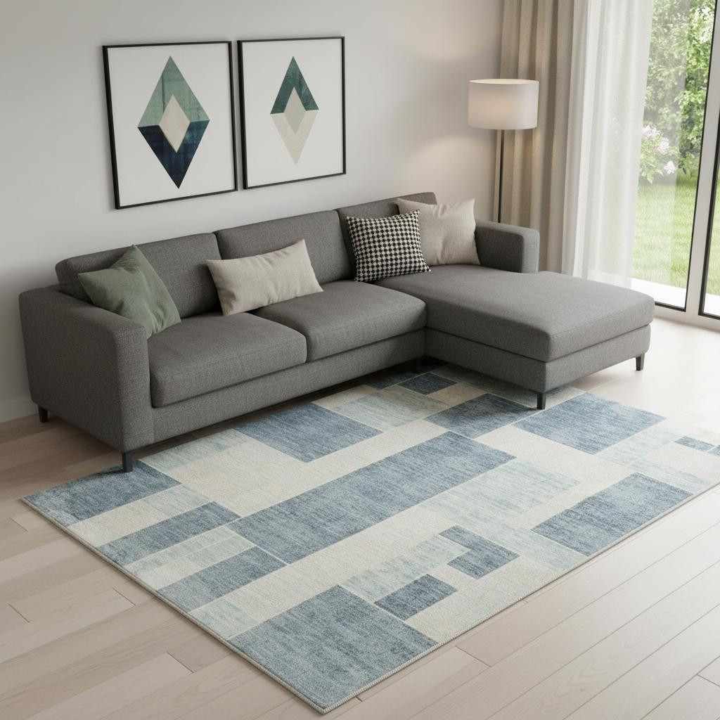 loom washable area rug, power loom washable area rug, washable area rug, ivory geometric power loom washable, blue ivory geometric power loom |