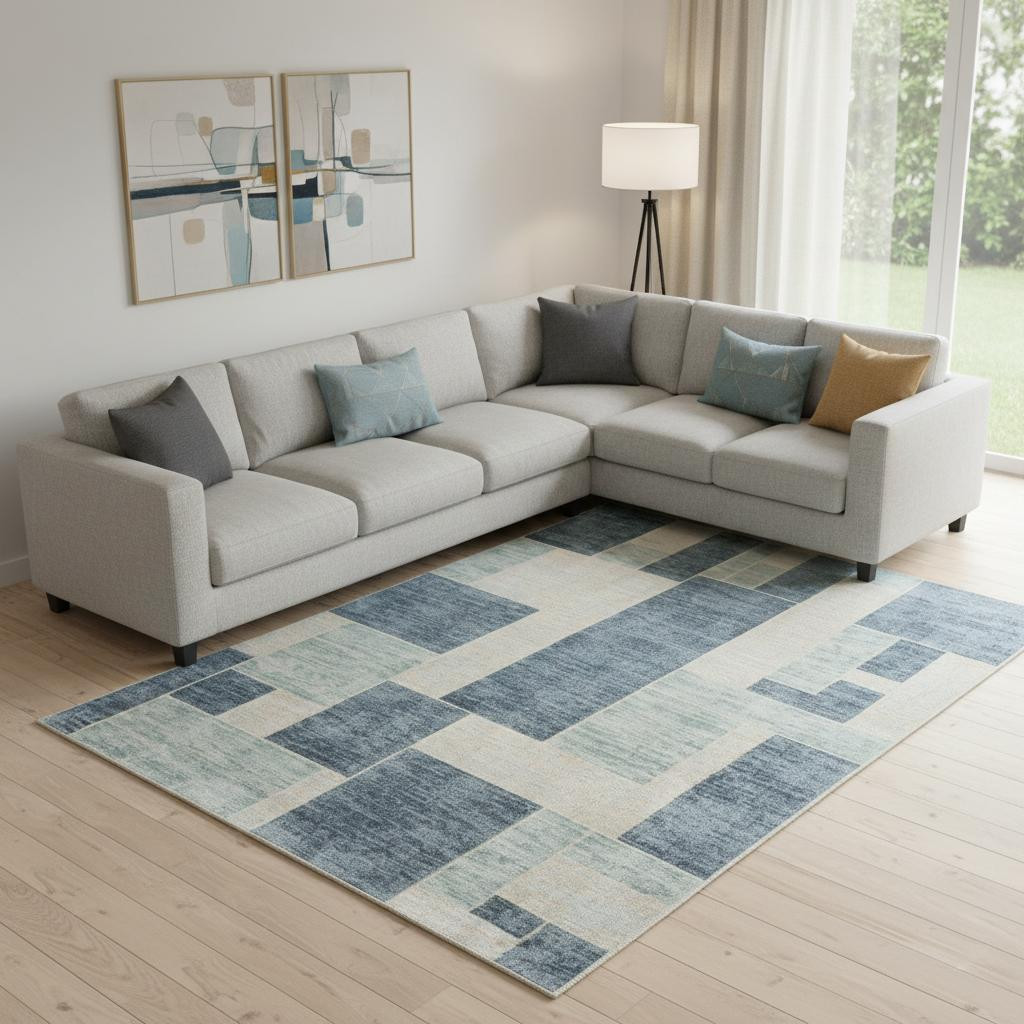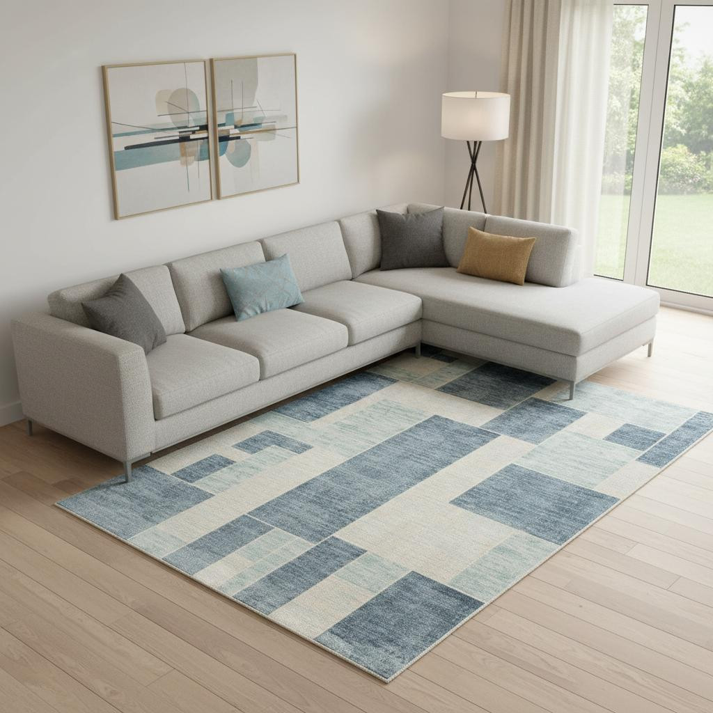 ivory geometric washable area rug, geometric washable area rug, washable area rug, blue ivory geometric washable area, 9' X 12' blue ivory geometric washable |