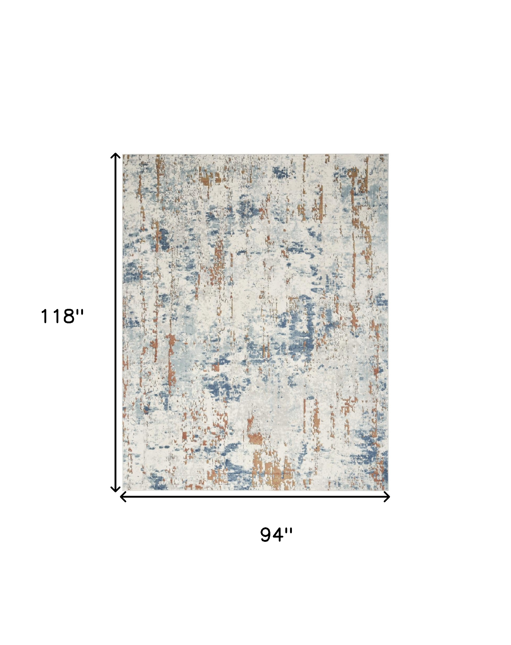 Add some artistry to your room with this 8-foot x 10-foot beige and blue abstract area rug. Built to last, this rug crafted from polypropylene and polyester fibers is known for its durability and long lasting appeal. Rugs are a great way to showcase your style, hide imperfections, warm your home and reduce noise. This larger sized, modern styled rug is ready to create a focal point or statement piece in your room. 94-inch h x 118-inch w x 0.32-inch d.