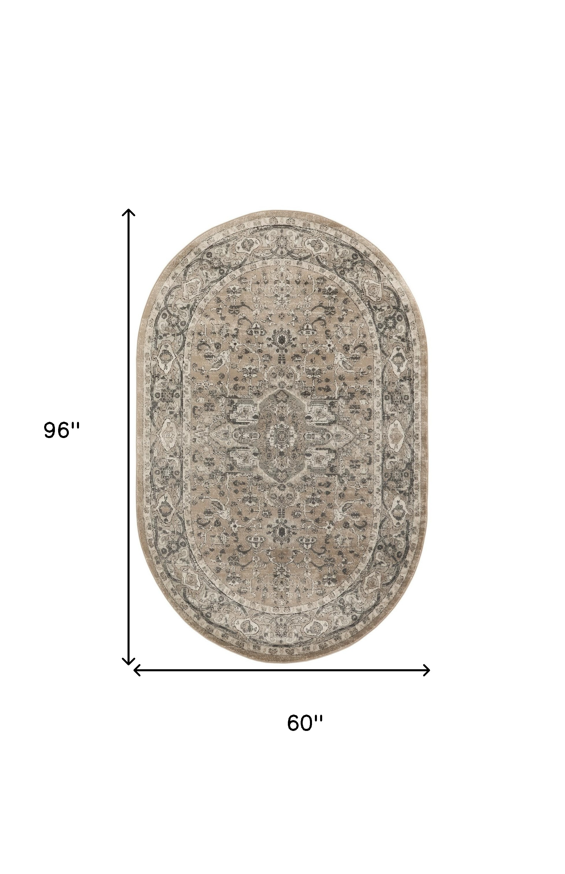 Set an inviting tone in your space with this 5-foot x 8-foot beige and gray medallion power loom distressed area rug. This oval shaped rug features a medallion design in beige and gray to give it visual interest. A classic shape marries with good looking design for your space area rugs help to give warmth and sense of home to your space. 60-inch H x 96-inch W x 0.32-inch D