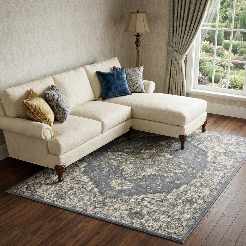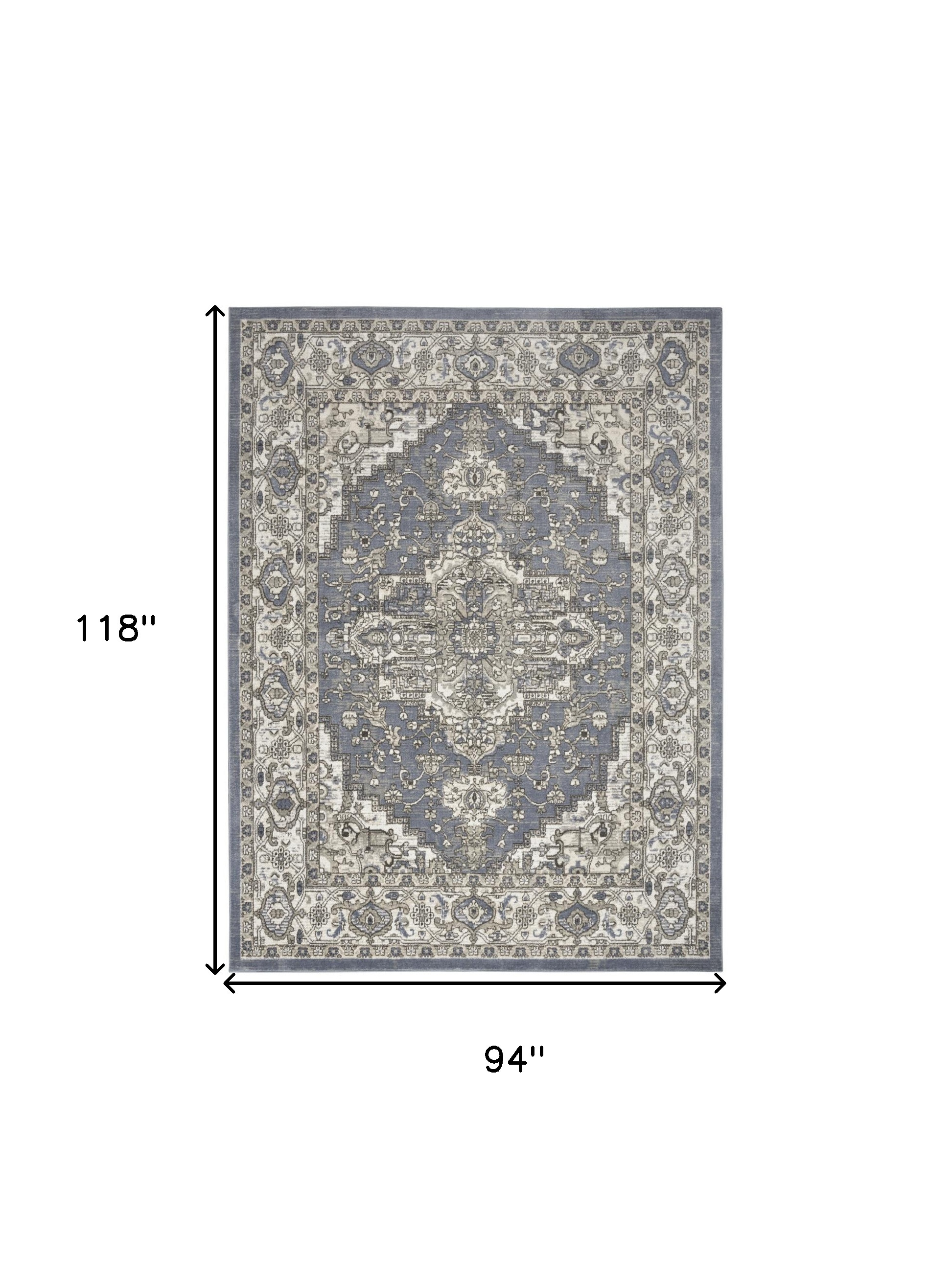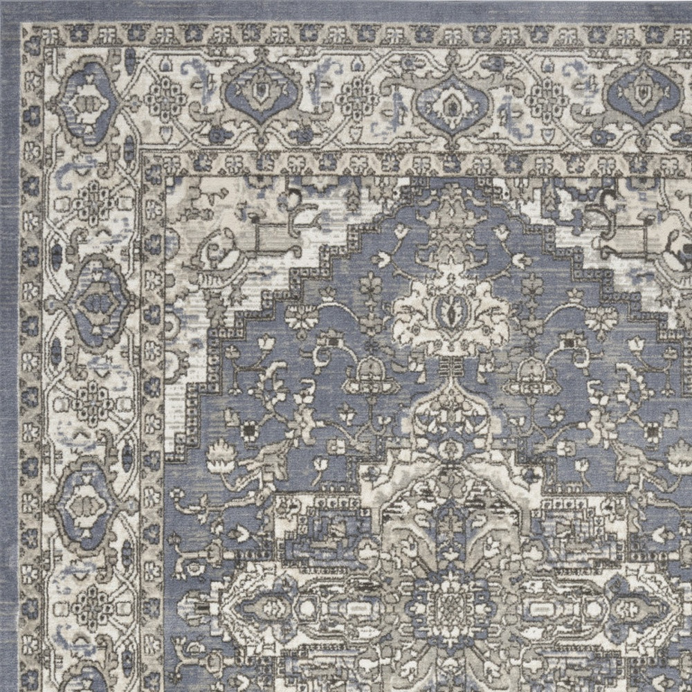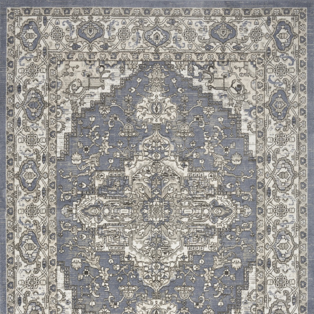 Set an inviting tone in your space with this 8-foot x 10-foot blue and ivory medallion power loom distressed area rug. This rectangle shaped rug features a medallion design in blue and ivory to give it visual interest. A classic shape marries with good looking design for your space place this area rug against a hardwood or tile floor and it will enliven your living space with style and sophistication. 94-inch H x 118-inch W x 0.32-inch D