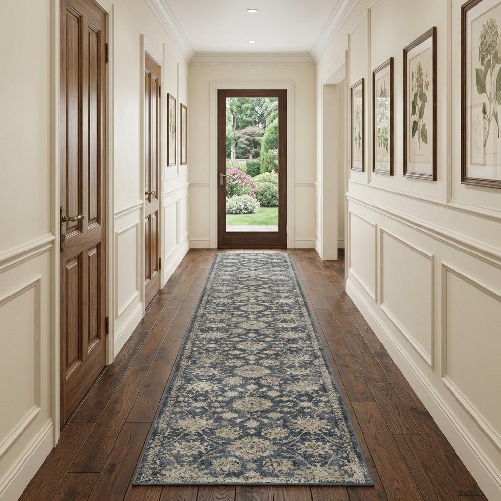 This 10-foot beige and blue floral medallion runner rug, is a great way to add warmth to a room. Built to last, this rug crafted from polypropylene and polyester fibers is known for its durability and long lasting appeal. Rugs are a great way to showcase your style, hide imperfections, warm your home and reduce noise. This rectangular shaped rug features a abstract design that will add a functional and decorative accent to your space. This traditional style runner makes a great accent for the hallway, in front of cabinets, in the laundry room, or any other space you need a narrow and long rug. 26-inch h x 120-inch w x 0.32-inch d.