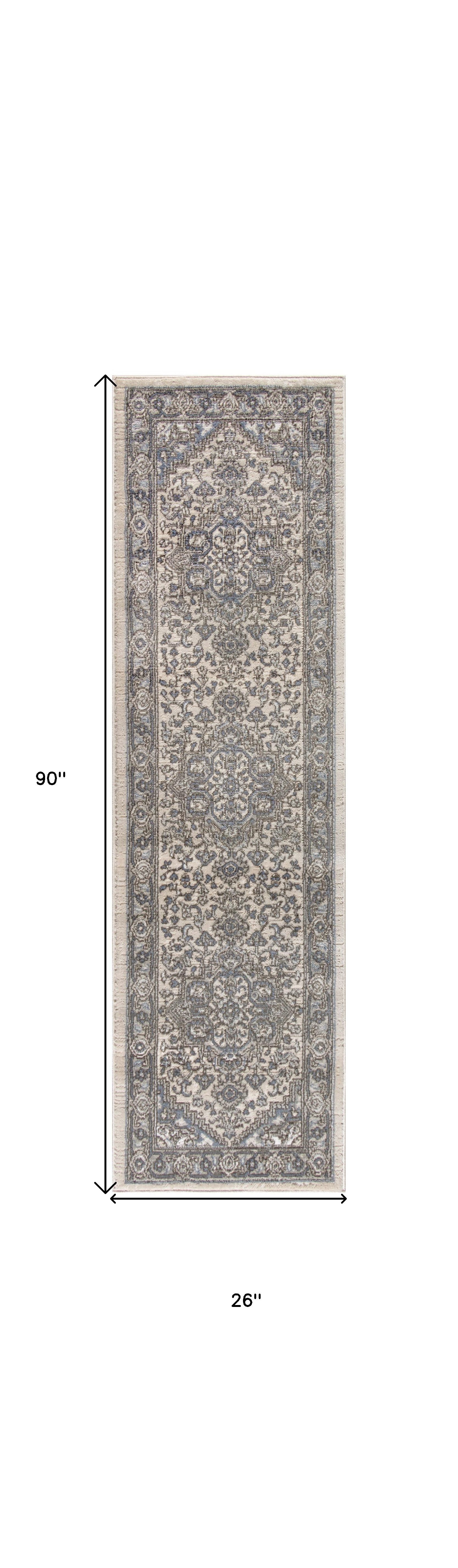 8' Blue And Ivory Medallion Distressed Runner Rug