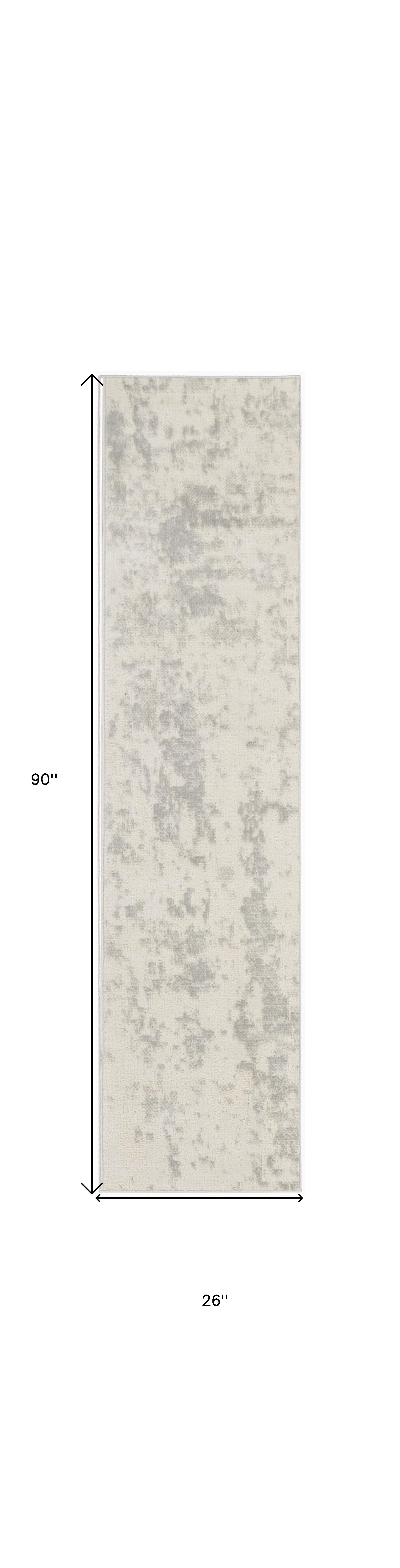 Add some artistry to your room with this 8-foot gray and ivory abstract runner rug. Built to last, this rug crafted from polypropylene and polyester fibers is known for its durability and long lasting appeal. Rugs are a great way to showcase your style, hide imperfections, warm your home and reduce noise. This modern style runner makes a great accent for the hallway, in front of cabinets, in the laundry room, or any other space you need a narrow and long rug. 26.00-inch h x 90.00-inch w x 0.32-inch d.