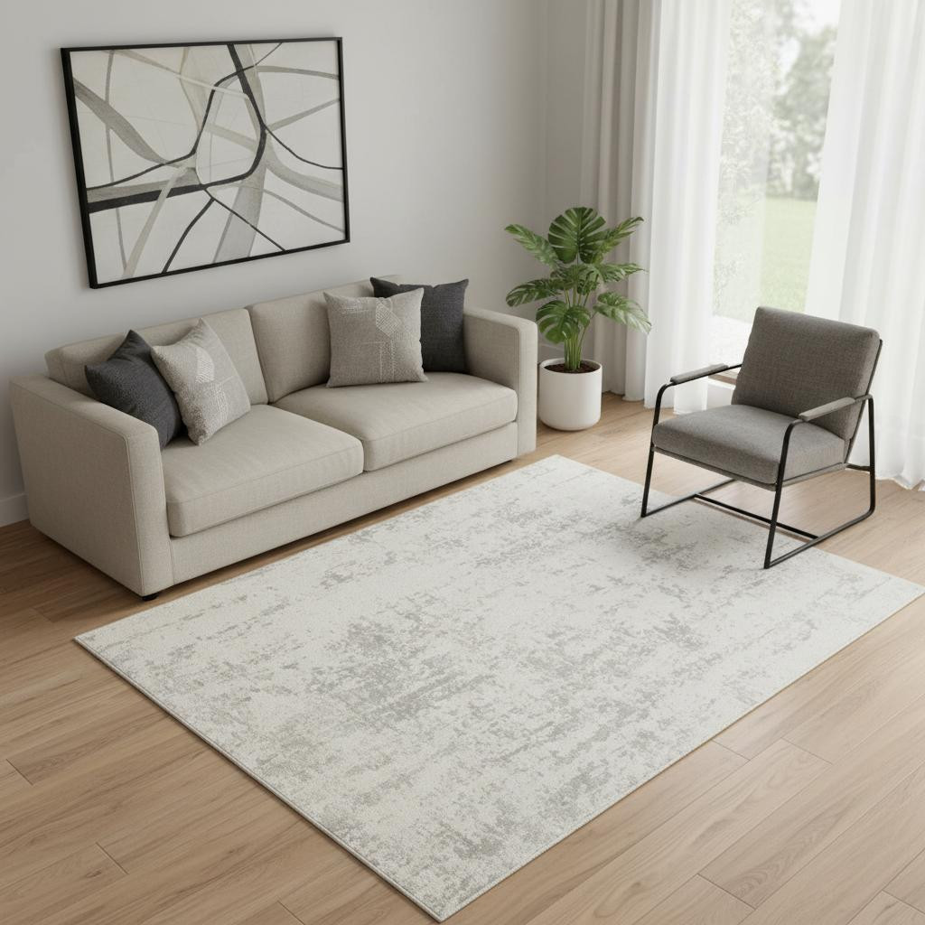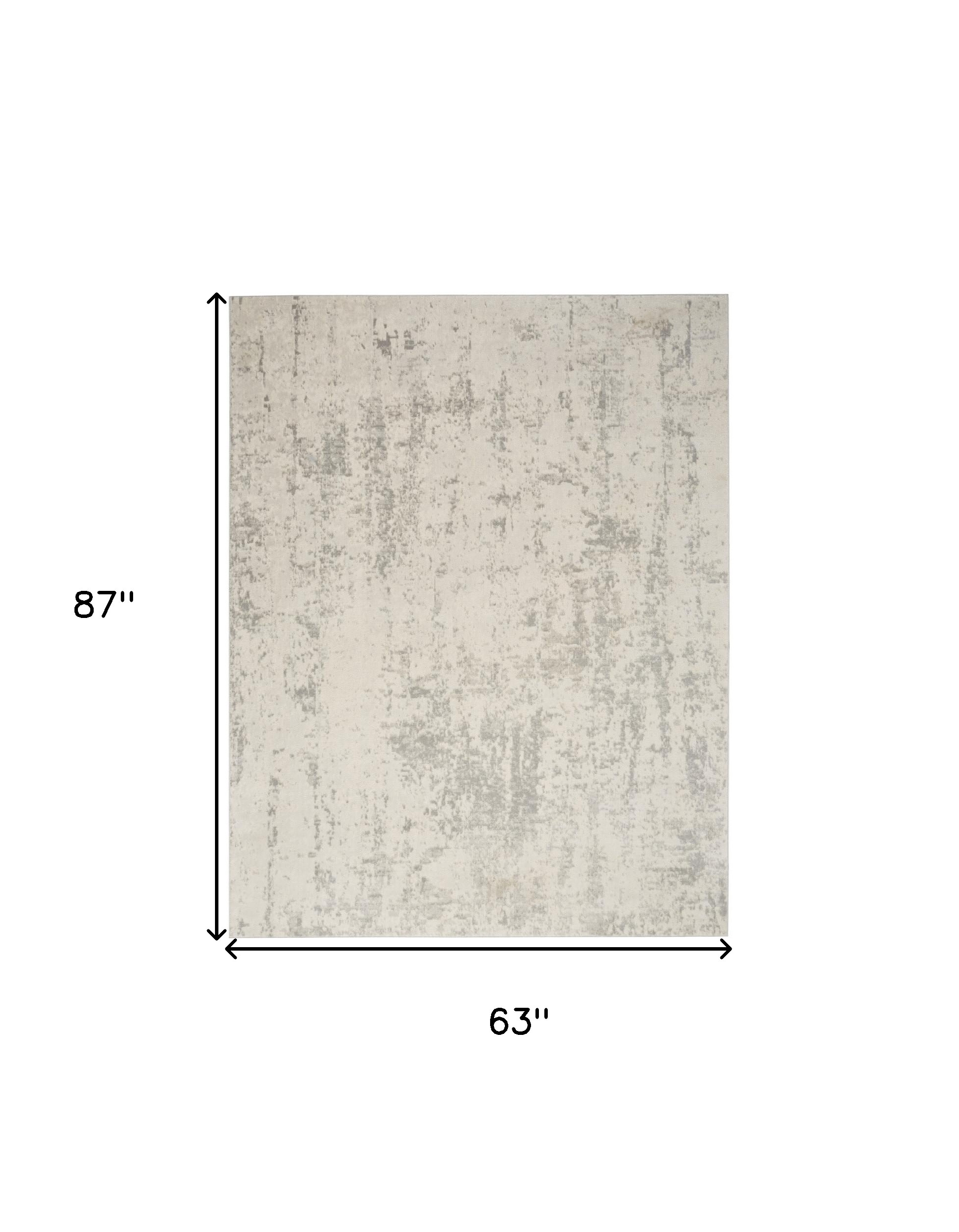 Set an inviting tone in your space with this 5-foot x 7-foot gray and ivory abstract area rug. Built to last, this rug crafted from polypropylene and polyester fibers is known for its durability and long lasting appeal. Rugs are a great way to showcase your style, hide imperfections, warm your home and reduce noise. This larger sized, modern styled rug is ready to create a focal point or statement piece in your room. 63-inch h x 87-inch w x 0.32-inch d.