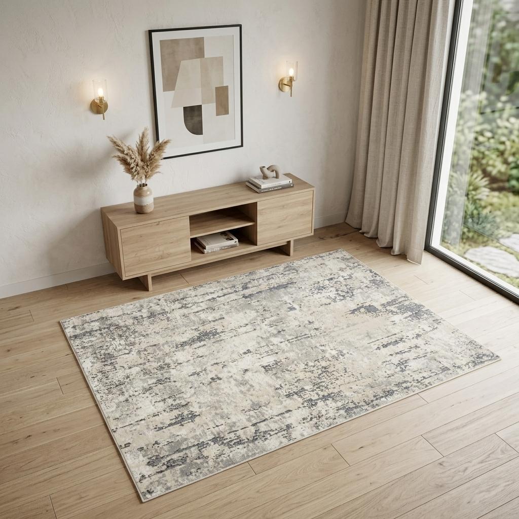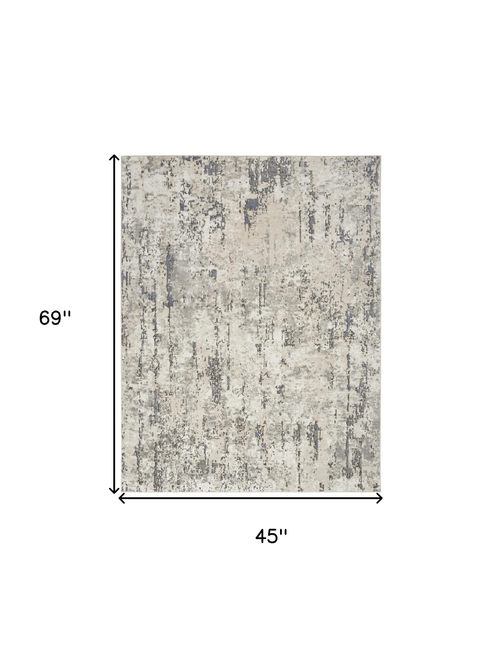 This 4-foot x 6-foot gray and ivory abstract power loom area rug, is a great way to add warmth to a room. This rectangle shaped rug features a abstract design in gray and ivory to give it visual interest. A classic shape marries with good looking design for your space place this area rug against a hardwood or tile floor and it will enliven your living space with style and sophistication. 45-inch H x 69-inch W x 0.32-inch D