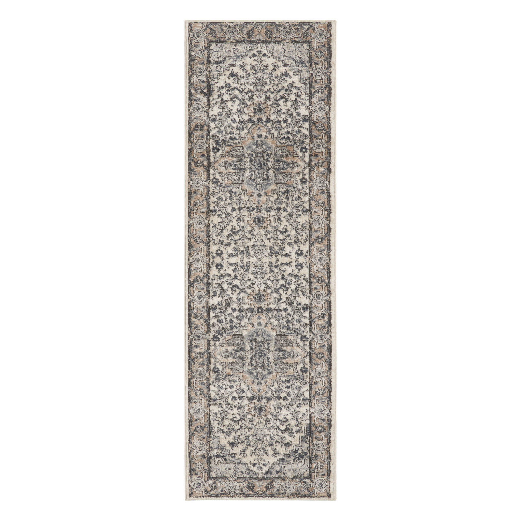 loom distressed runner rug, power loom distressed runner rug, distressed runner rug, ivory medallion power loom distressed, gray ivory medallion power loom |
