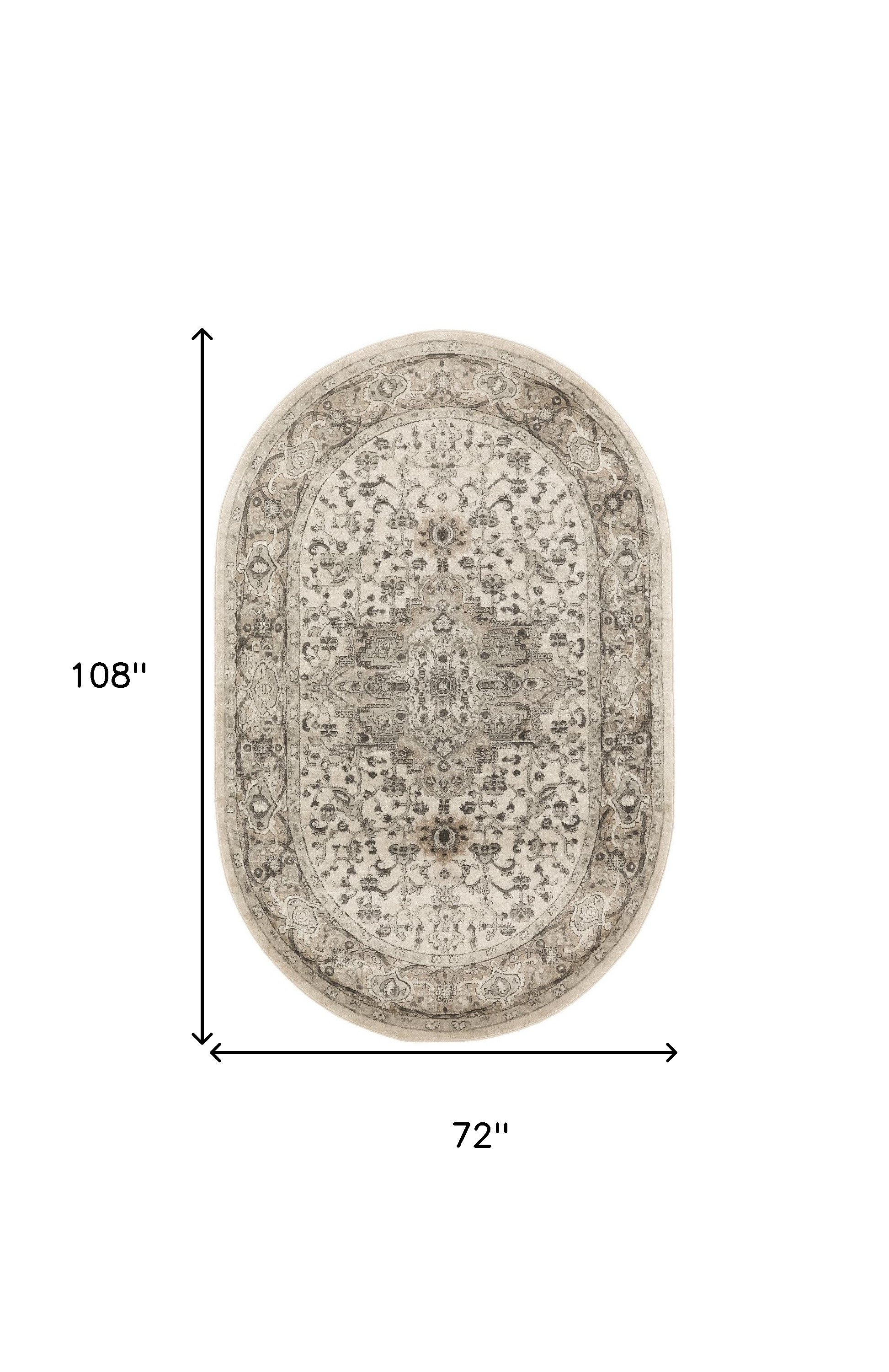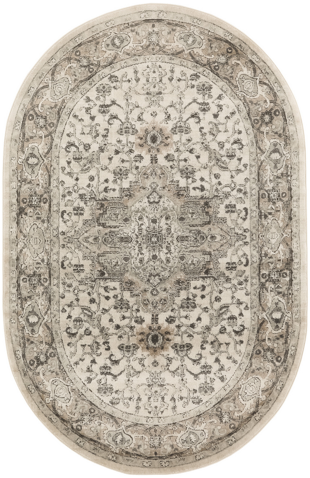 This 6-foot x 9-foot gray and ivory medallion power loom distressed area rug, is a great way to add warmth to a room. This oval shaped rug features a medallion design in gray and ivory to give it visual interest. A classic shape marries with good looking design for your space area rugs help to give warmth and sense of home to your space. 72-inch H x 108-inch W x 0.32-inch D