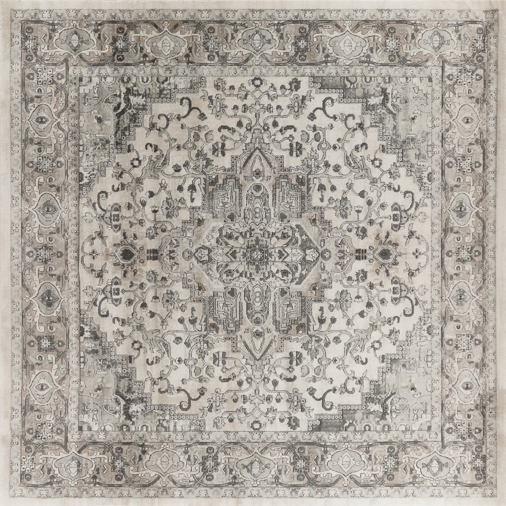 loom distressed area rug, power loom distressed area rug, distressed area rug, ivory square medallion power loom, 10' gray ivory square |