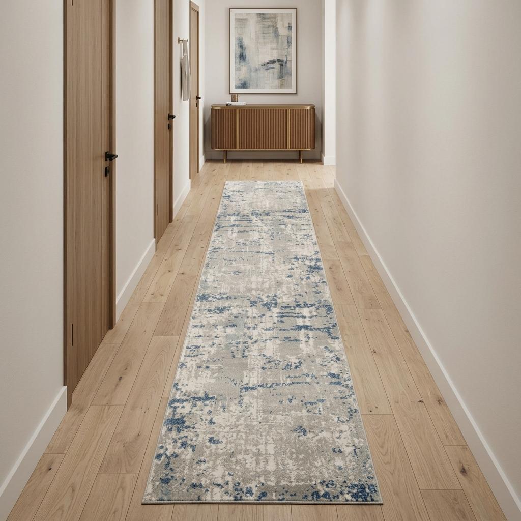 Add great coloration and comfortable texture to your space with this 16-foot gray and ivory abstract runner rug. Built to last, this rug crafted from polypropylene and polyester fibers is known for its durability and long lasting appeal. Rugs are a great way to showcase your style, hide imperfections, warm your home and reduce noise. This rectangular shaped rug features a abstract design that will add a functional and decorative accent to your space. This modern style runner makes a great accent for the hallway, in front of cabinets, in the laundry room, or any other space you need a narrow and long rug. 26-inch h x 192-inch w x 0.32-inch d.