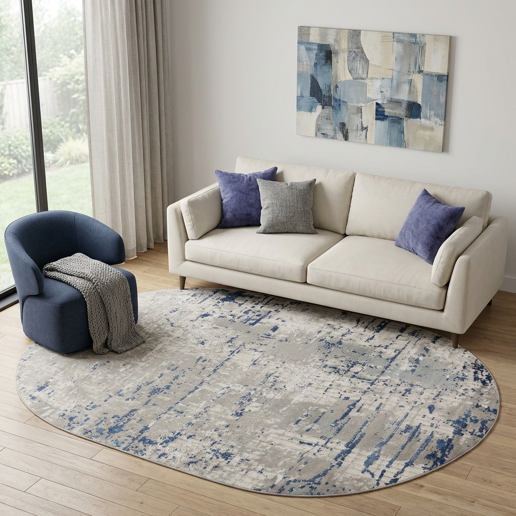 Add some artistry to your room with this 5-foot x 8-foot gray and ivory abstract power loom area rug. This oval shaped rug features a abstract design in gray and ivory to give it visual interest. A classic shape marries with good looking design for your space place this area rug against a hardwood or tile floor and it will enliven your living space with style and sophistication. 60-inch H x 96-inch W x 0.32-inch D
