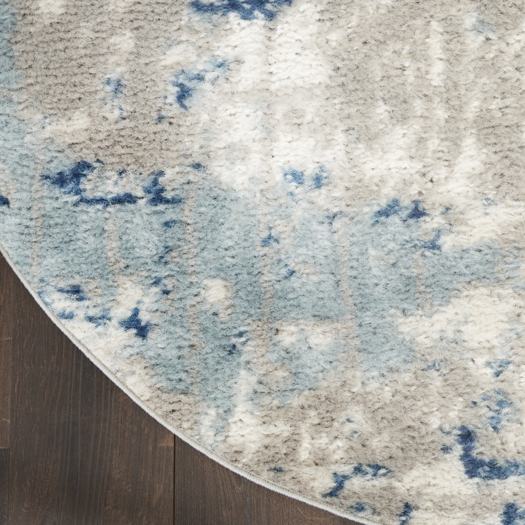 Add some artistry to your room with this 10-foot gray and ivory abstract round rug. Built to last, this rug crafted from polypropylene and polyester fibers is known for its durability and long lasting appeal. Rugs are a great way to showcase your style, hide imperfections, warm your home and reduce noise. This geometric round shaped rug features a abstract pattern in gray and ivory that combines a good looking print with a unique and updated shape. The mix of shape, color, and design gives this rug refreshing visual interest. This larger sized, modern styled rug is ready to create a focal point or statement piece in your room. 120-inch h x 120-inch w x 0.32-inch d.