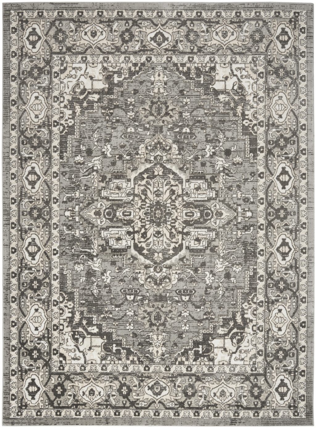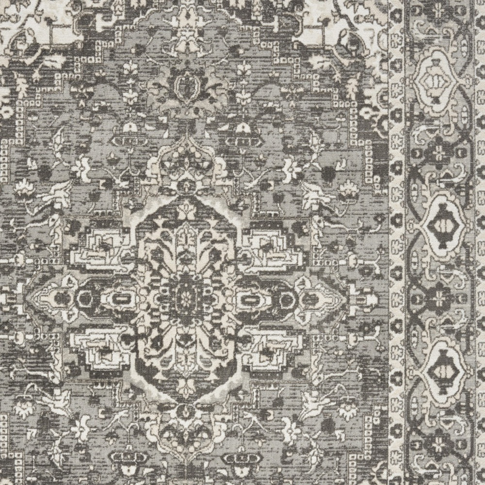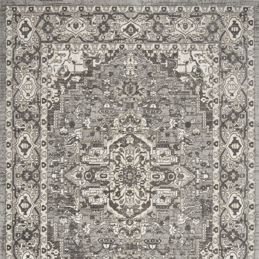 Set an inviting tone in your space with this 8-foot x 10-foot gray and ivory medallion power loom distressed area rug. This rectangle shaped rug features a medallion design in gray and ivory to give it visual interest. A classic shape marries with good looking design for your space area rugs help to give warmth and sense of home to your space. 94-inch H x 118-inch W x 0.32-inch D