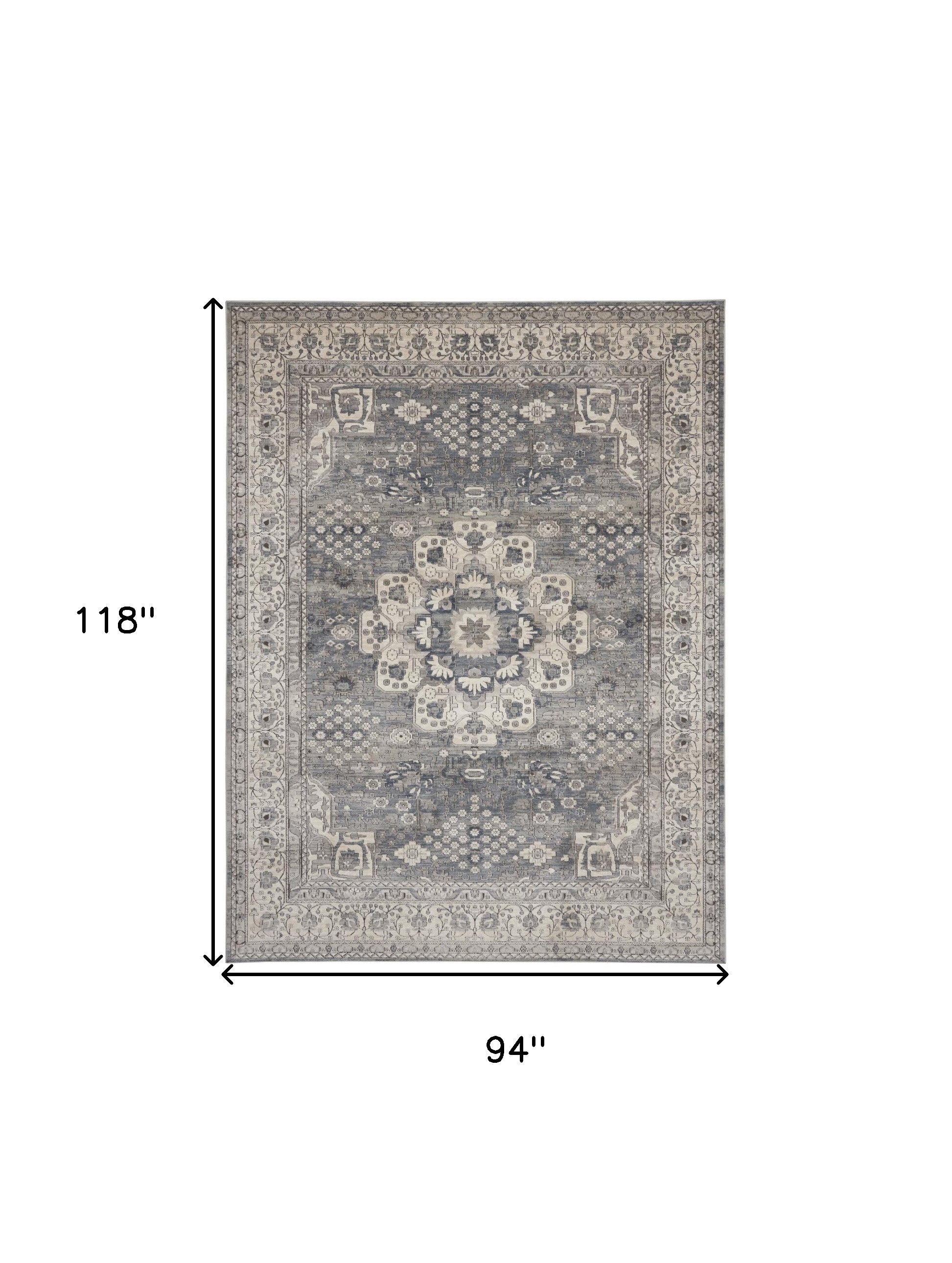 Add some artistry to your room with this 8-foot x 10-foot gray and ivory medallion power loom area rug. This rectangle shaped rug features a medallion design in gray and ivory to give it visual interest. A classic shape marries with good looking design for your space area rugs help to give warmth and sense of home to your space. 94-inch H x 118-inch W x 0.32-inch D