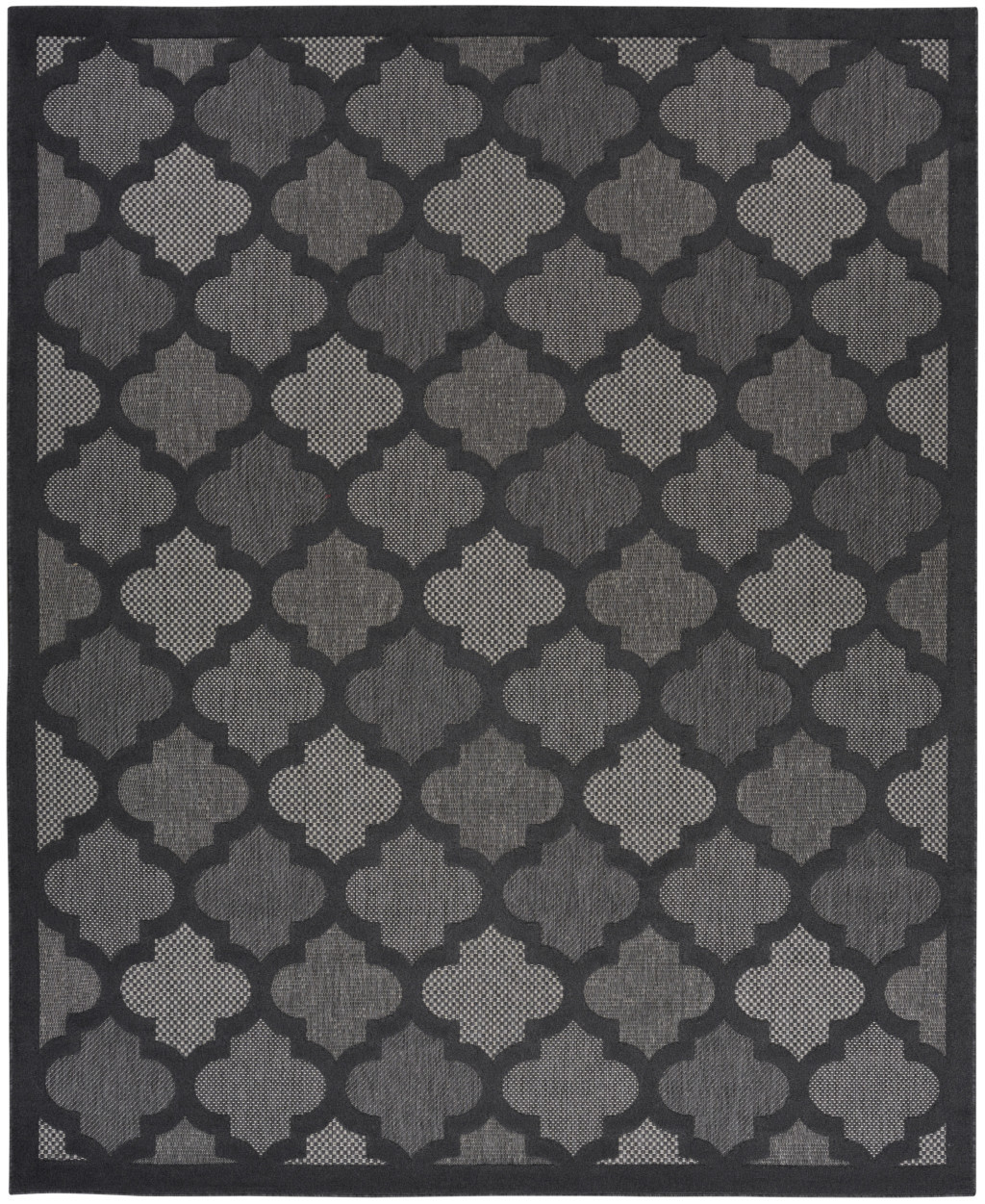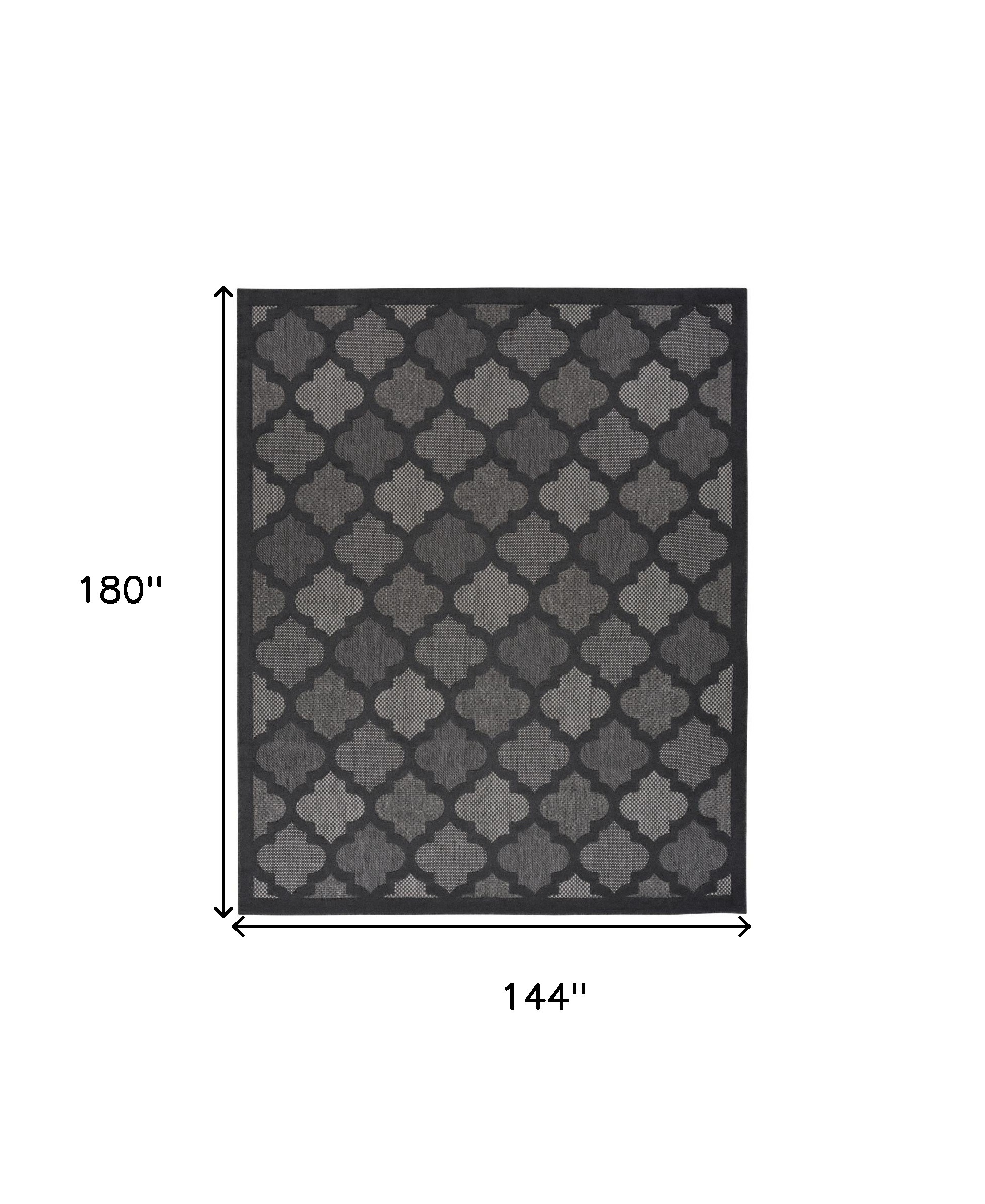 Add some artistry to your room with this 12-foot x 15-foot charcoal and black trellis indoor outdoor area rug. This rectangle shaped rug features a trellis design that will work well both indoors or out. A classic shape marries with good looking design for your living room, hall, bedroom, porch, patio, or poolside. Versatile in use, durable, and easy to maintain, this rug is an ideal solution to add a decorative and inviting touch to your indoor or outdoor space. 144-inch h x 180-inch w x 0.3-inch d.
