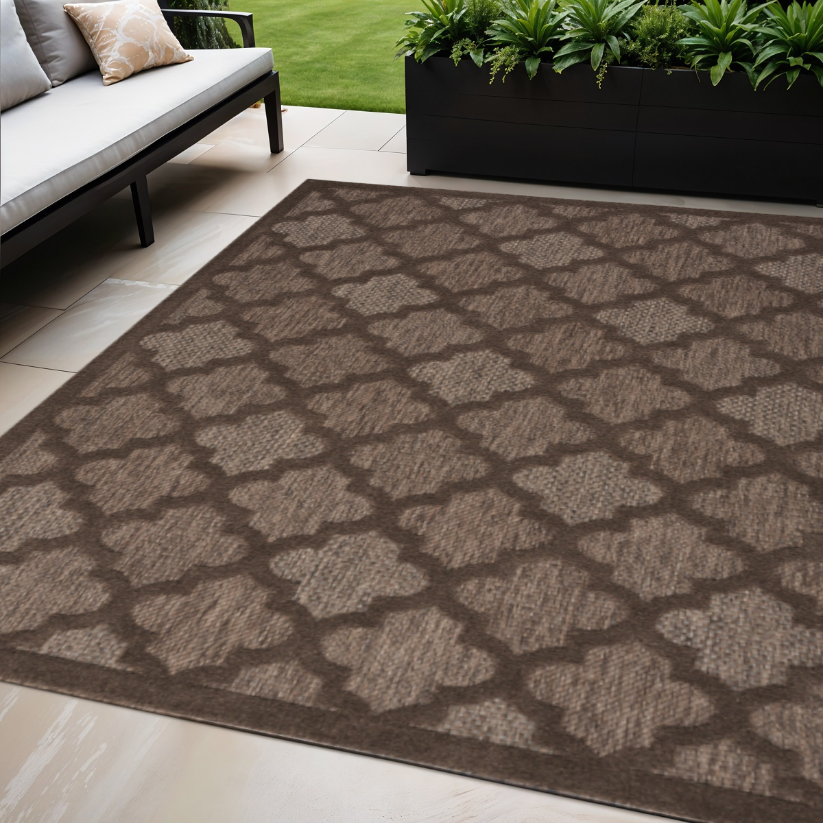 trellis indoor outdoor area rug, outdoor area rug, indoor outdoor area rug, brown trellis indoor outdoor area, dark brown light brown trellis |