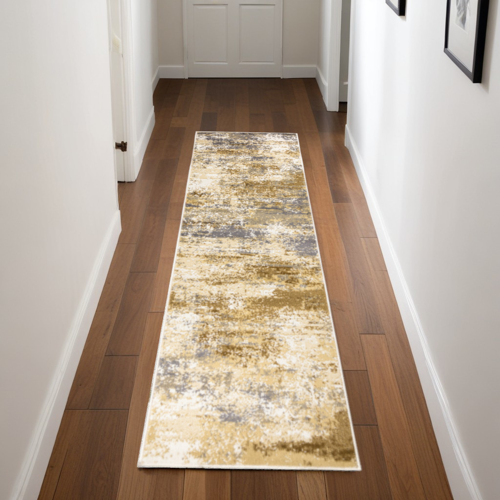 Add great coloration and comfortable texture to your space with this 8-foot beige and blue abstract runner rug. Built to last, this rug crafted from polypropylene fibers is known for its durability and long lasting appeal. Rugs are a great way to showcase your style, hide imperfections, warm your home and reduce noise. This rectangular shaped rug features a abstract design that will add a functional and decorative accent to your space. This modern style runner makes a great accent for the hallway, in front of cabinets, in the laundry room, or any other space you need a narrow and long rug. 27-inch h x 90-inch w x 0.5-inch d.