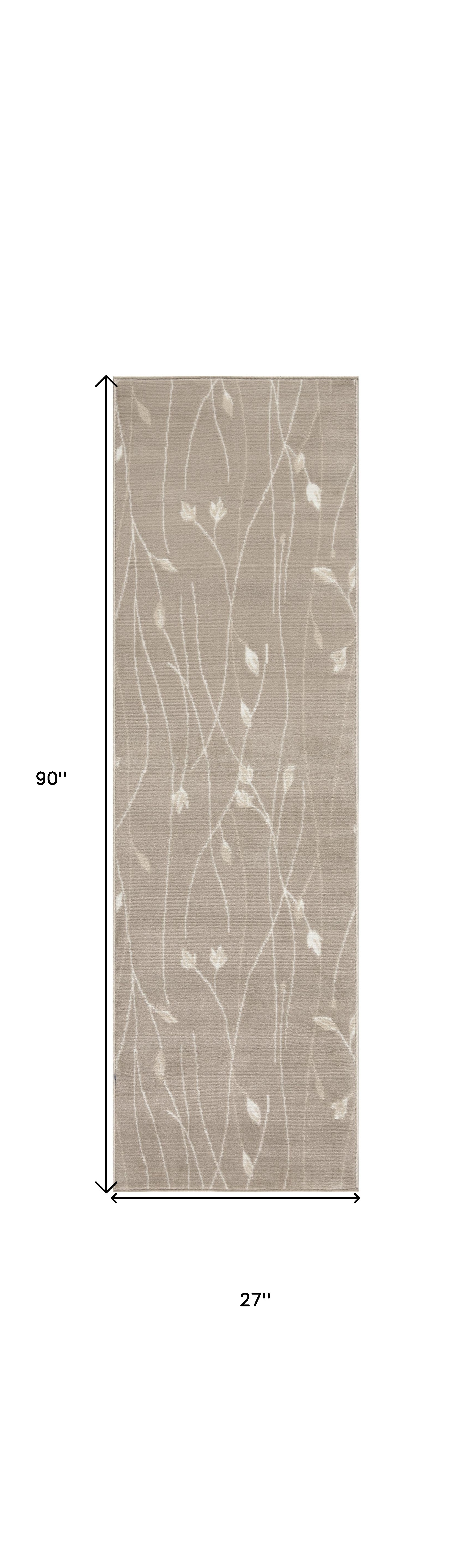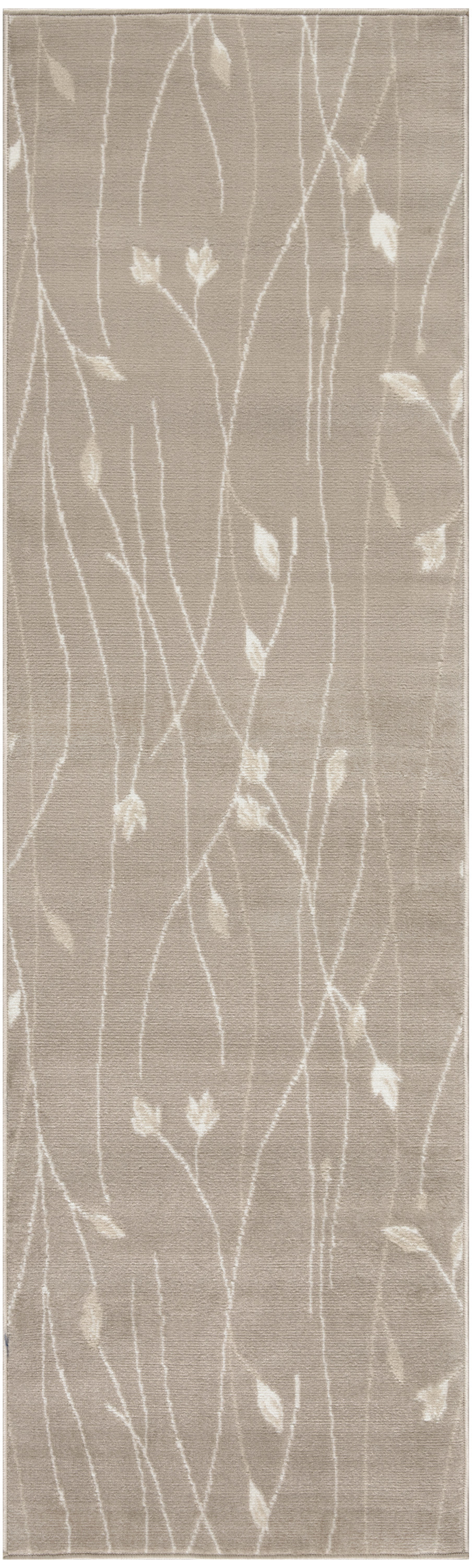 This 8-foot beige and ivory floral runner rug, is a great way to add warmth to a room. Built to last, this rug crafted from polypropylene fibers is known for its durability and long lasting appeal. Rugs are a great way to showcase your style, hide imperfections, warm your home and reduce noise. This modern style runner makes a great accent for the hallway, in front of cabinets, in the laundry room, or any other space you need a narrow and long rug. 27.00-inch h x 90.00-inch w x 0.50-inch d.