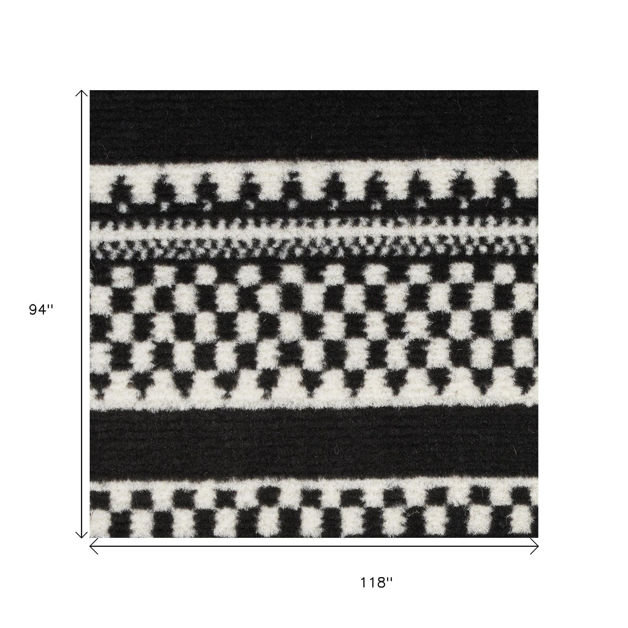 Set an inviting tone in your space with this 8-foot x 10-foot black striped power loom area rug. This rectangle shaped rug features a striped design in black to give it visual interest. A classic shape marries with good looking design for your space the coloration of this rug infuses an updated and modern vibe into your space. Place this area rug against a hardwood or tile floor and it will enliven your living space with style and sophistication. 94-inch H x 118-inch W x 0.5-inch D