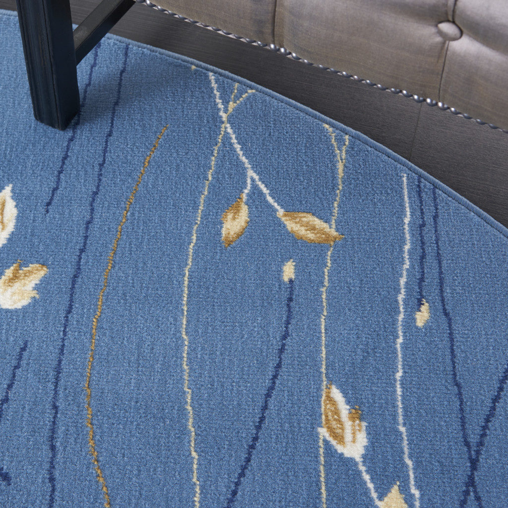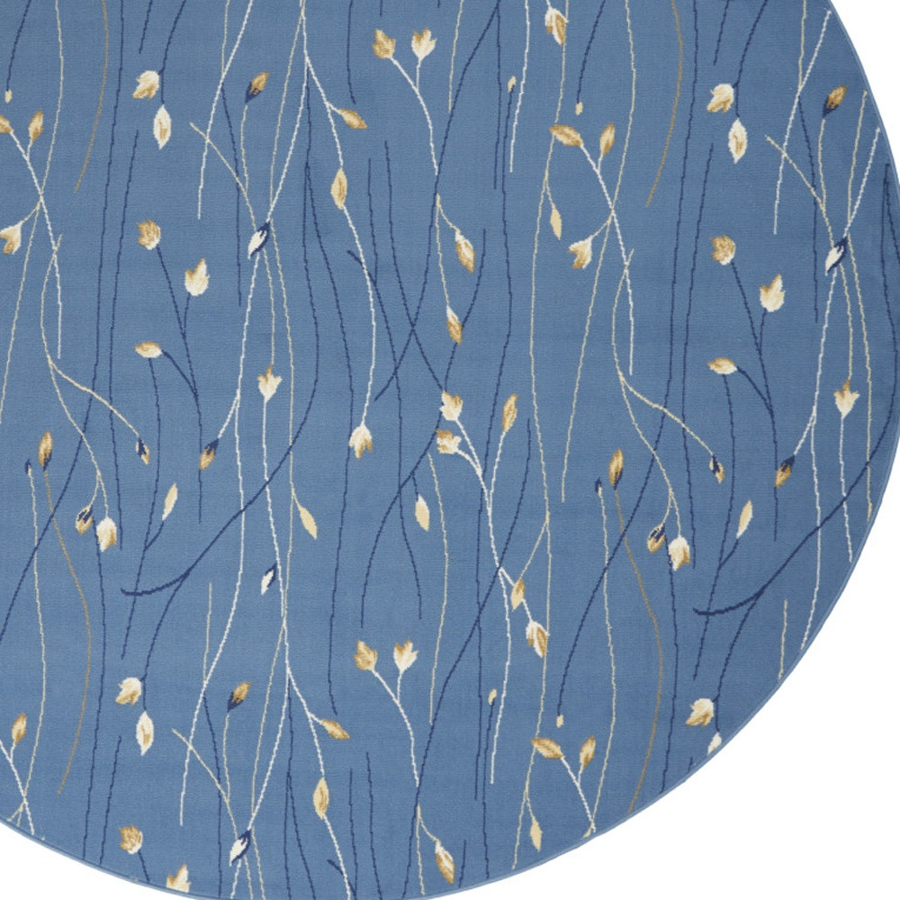 Add great coloration and comfortable texture to your space with this 8-foot blue and beige round floral power loom area rug. This geometric round shaped rug features a floral pattern in blue and beige that combines a good looking print with a unique and updated shape. The mix of shape, color, and design gives this rug refreshing visual interest. Area rugs help to give warmth and sense of home to your space. 96-inch H x 96-inch W x 0.5-inch D