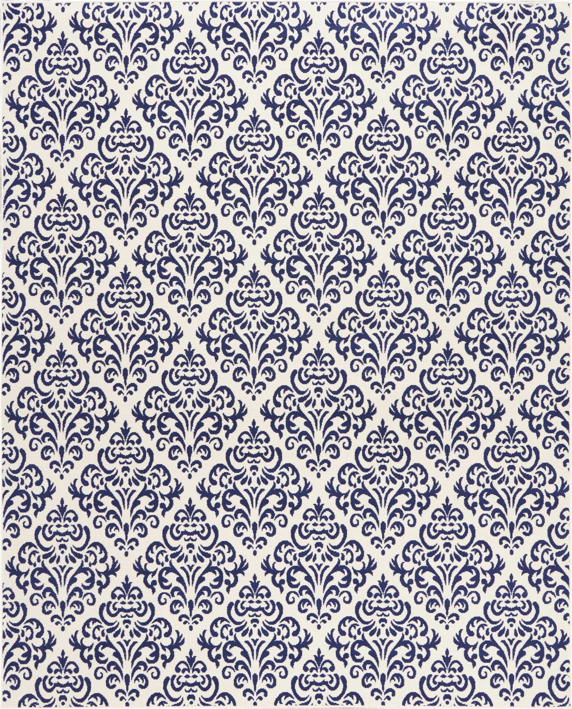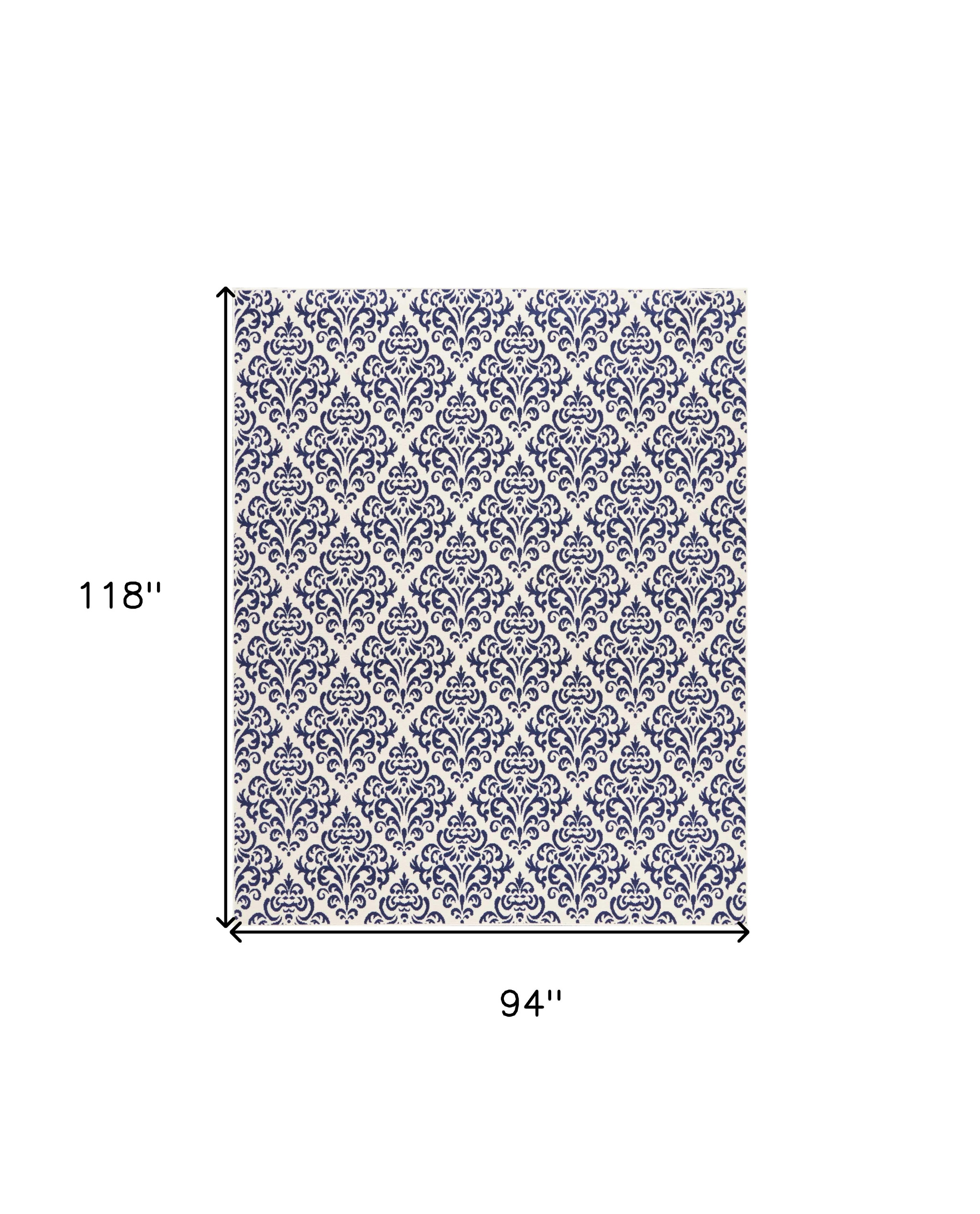 Add some artistry to your room with this 8-foot x 10-foot blue and white damask power loom area rug. This rectangle shaped rug features a damask design in blue and white to give it visual interest. A classic shape marries with good looking design for your space area rugs help to give warmth and sense of home to your space. 94-inch H x 118-inch W x 0.5-inch D