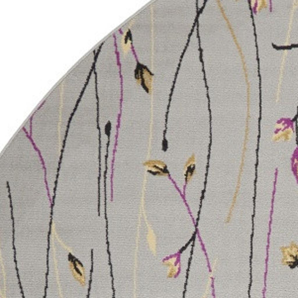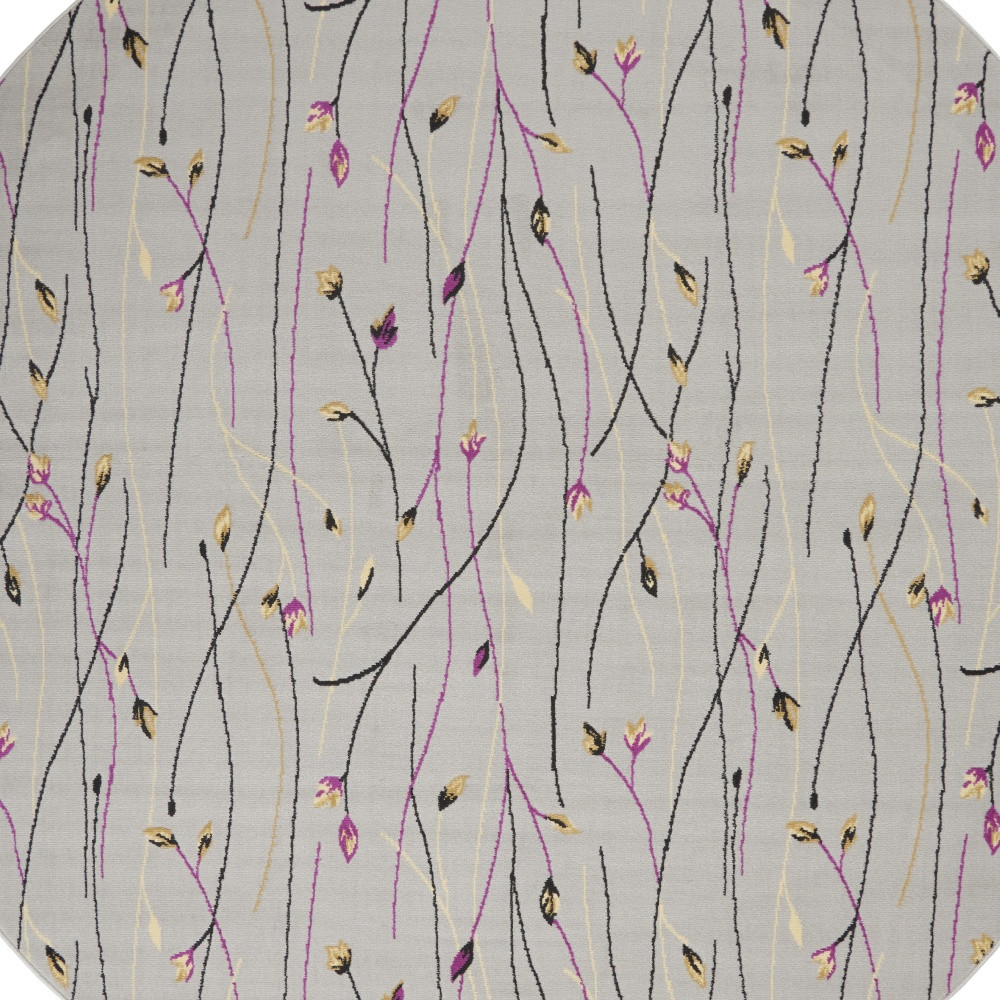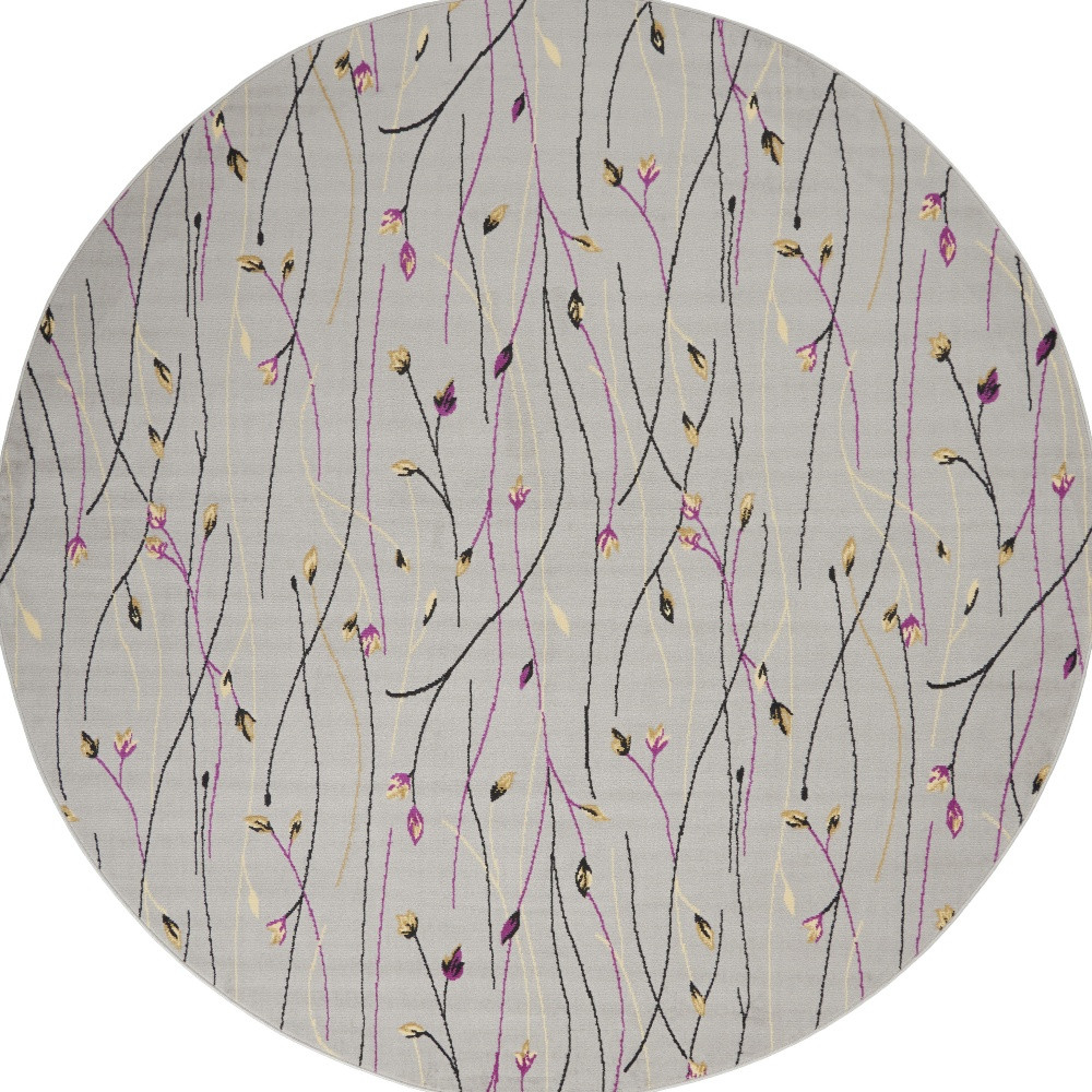 Set an inviting tone in your space with this 8-foot gray and pink round floral power loom area rug. This geometric round shaped rug features a floral pattern in gray and pink that combines a good looking print with a unique and updated shape. The mix of shape, color, and design gives this rug refreshing visual interest. Area rugs help to give warmth and sense of home to your space. 96-inch H x 96-inch W x 0.5-inch D