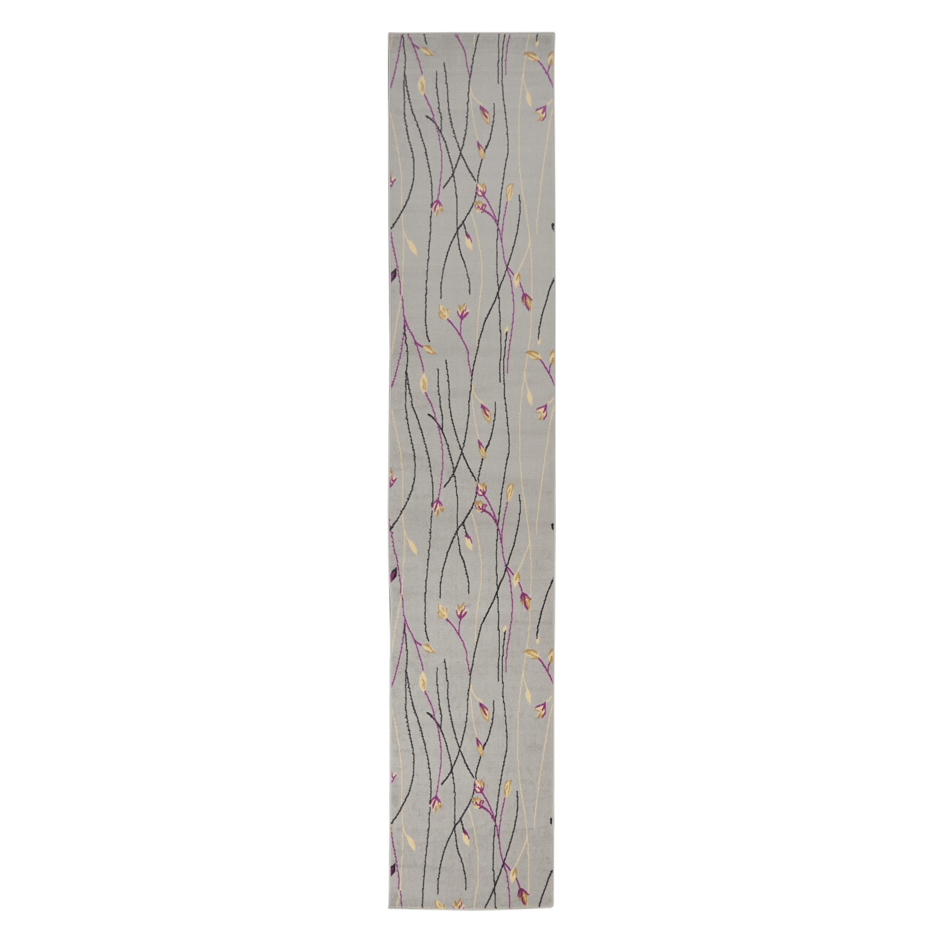 This 12-foot gray floral vines runner rug, is a great way to add warmth to a room. Built to last, this rug crafted from polypropylene fibers is known for its durability and long lasting appeal. Rugs are a great way to showcase your style, hide imperfections, warm your home and reduce noise. This rectangular shaped rug features a abstract design that will add a functional and decorative accent to your space. This contemporary style runner makes a great accent for the hallway, in front of cabinets, in the laundry room, or any other space you need a narrow and long rug. 27-inch h x 144-inch w x 0.5-inch d.