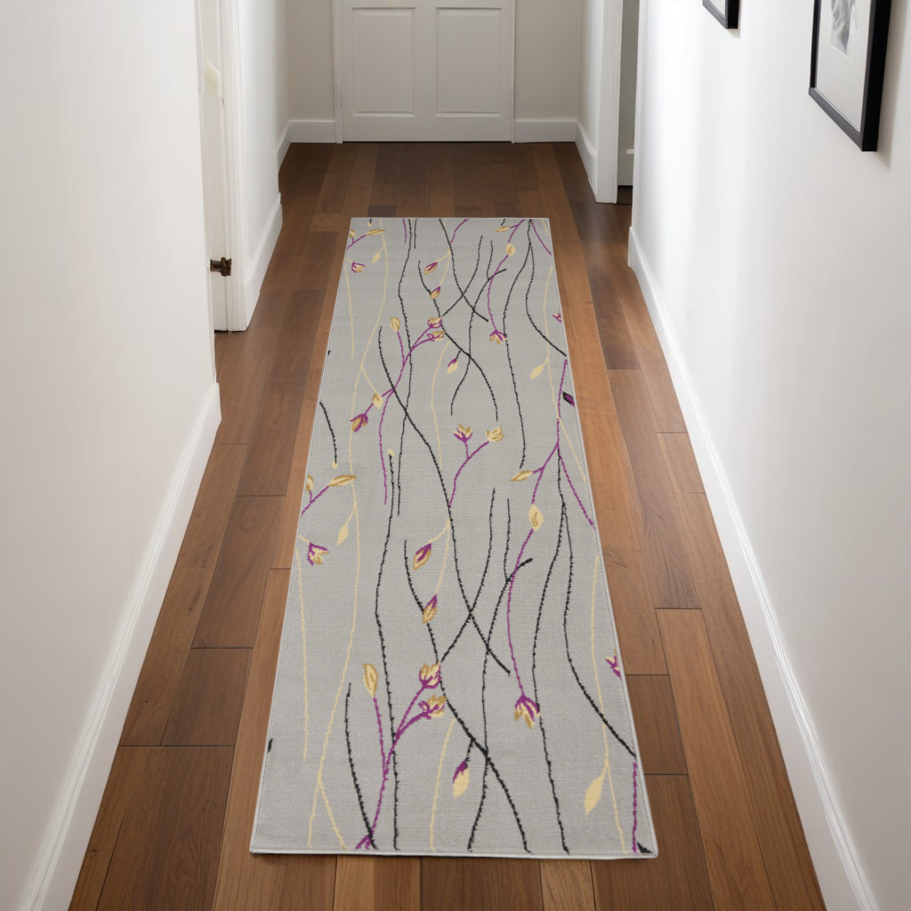 Add great coloration and comfortable texture to your space with this 8-foot gray and pink floral runner rug. Built to last, this rug crafted from polypropylene fibers is known for its durability and long lasting appeal. Rugs are a great way to showcase your style, hide imperfections, warm your home and reduce noise. This rectangular shaped rug features a abstract design that will add a functional and decorative accent to your space. This contemporary style runner makes a great accent for the hallway, in front of cabinets, in the laundry room, or any other space you need a narrow and long rug. 27-inch h x 90-inch w x 0.5-inch d.