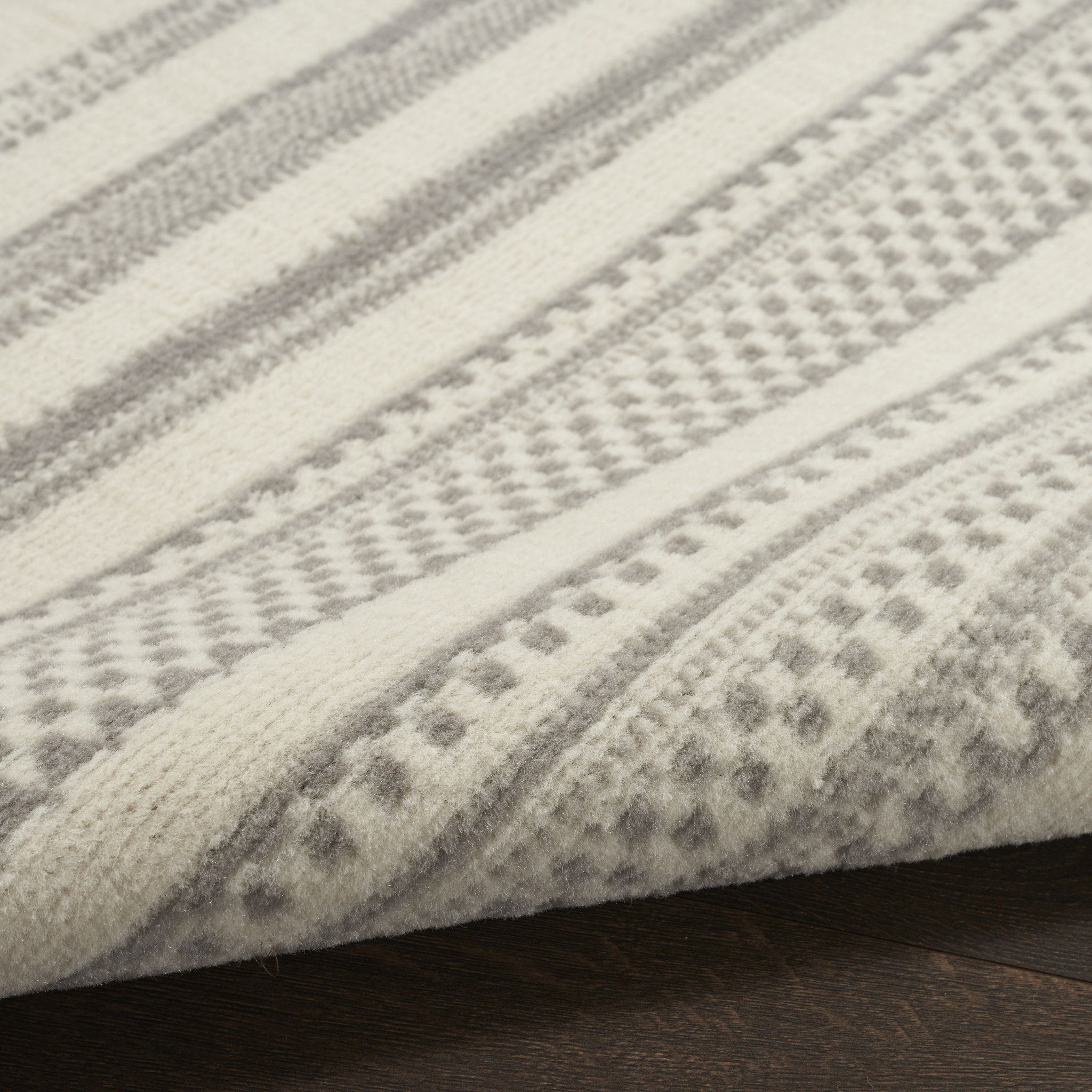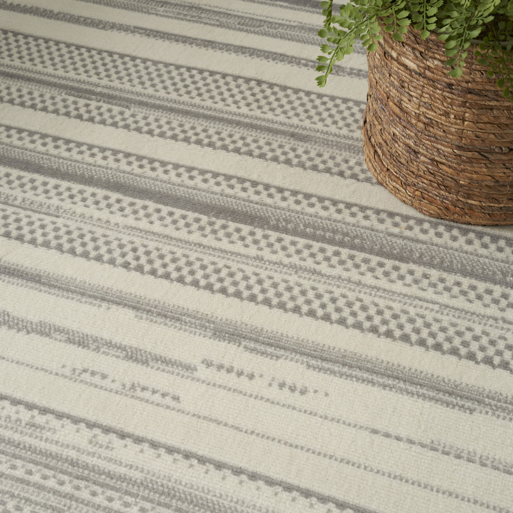 Add some artistry to your room with this 5-foot x 7-foot gray and ivory striped power loom distressed area rug. This rectangle shaped rug features a striped design in gray and ivory to give it visual interest. A classic shape marries with good looking design for your space place this area rug against a hardwood or tile floor and it will enliven your living space with style and sophistication. 63-inch H x 87-inch W x 0.5-inch D