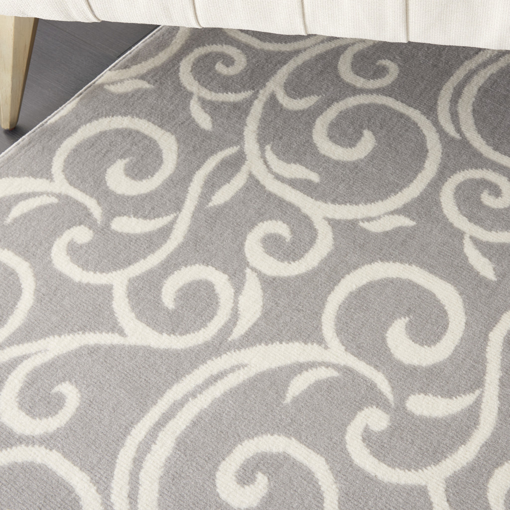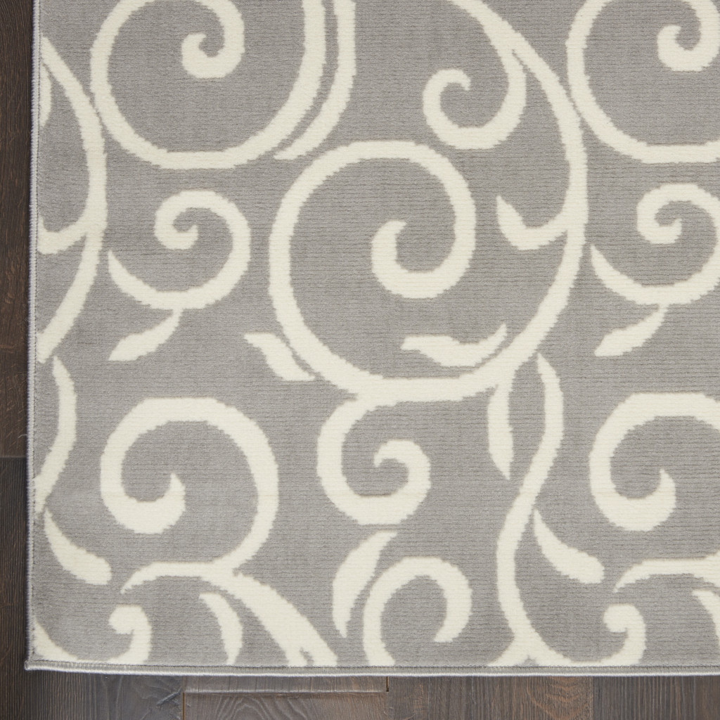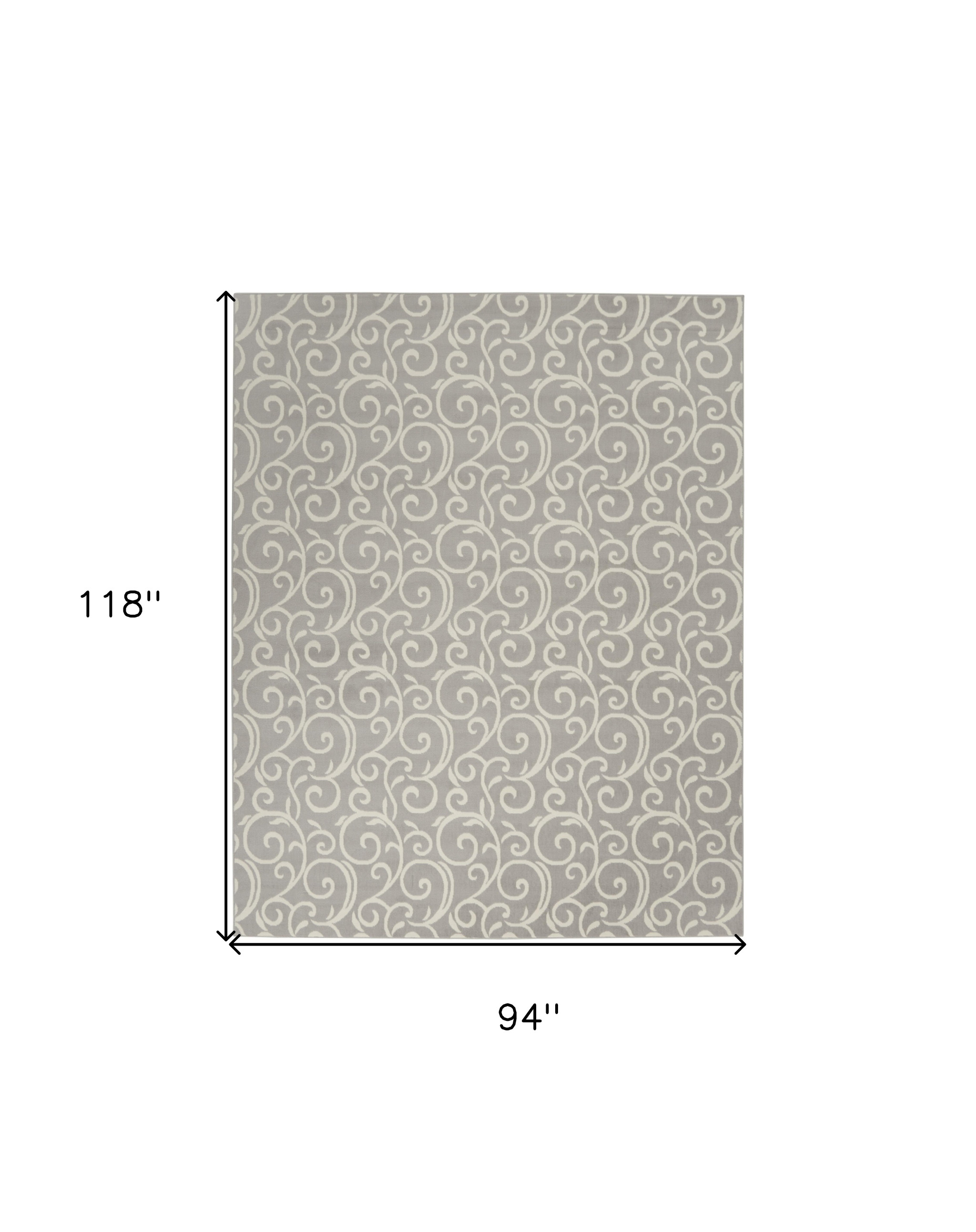 Set an inviting tone in your space with this 8-foot x 10-foot gray and ivory floral vines power loom area rug. This rectangle shaped rug features a floral vines design in gray and ivory to give it visual interest. A classic shape marries with good looking design for your space area rugs help to give warmth and sense of home to your space. 94-inch H x 118-inch W x 0.5-inch D