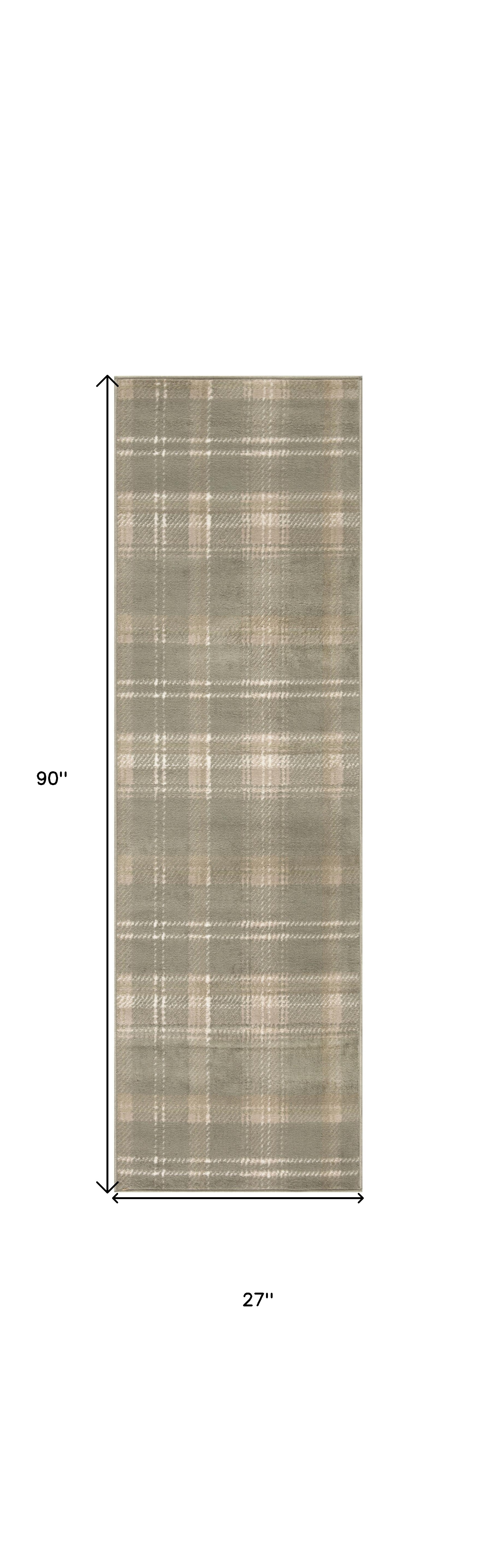 This 8-foot green and ivory plaid runner rug, is a great way to add warmth to a room. Built to last, this rug crafted from polypropylene fibers is known for its durability and long lasting appeal. Rugs are a great way to showcase your style, hide imperfections, warm your home and reduce noise. This rectangular shaped rug features a abstract design that will add a functional and decorative accent to your space. This cottage style runner makes a great accent for the hallway, in front of cabinets, in the laundry room, or any other space you need a narrow and long rug. 27-inch h x 90-inch w x 0.5-inch d.