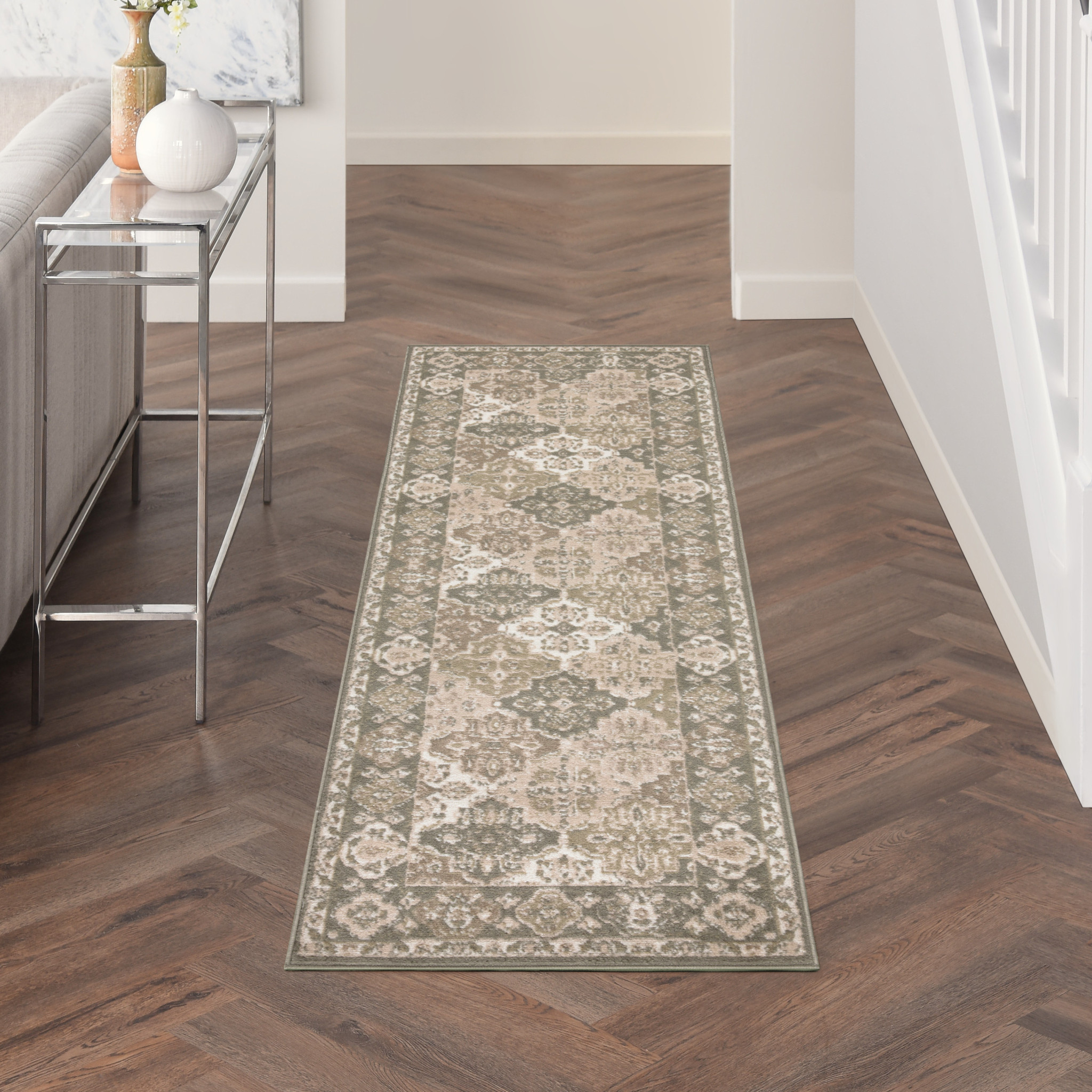 power loom distressed runner rug, loom distressed runner rug, distressed runner rug, ivory medallion power loom distressed, green ivory medallion power loom |