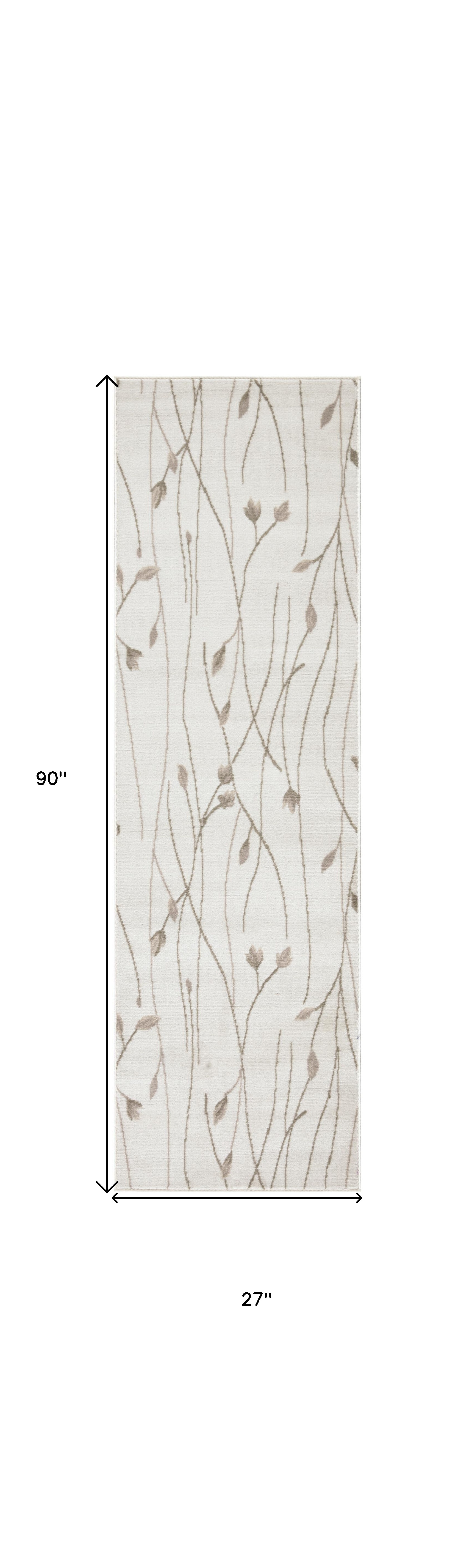 This 8-foot beige and ivory floral runner rug, is a great way to add warmth to a room. Built to last, this rug crafted from polypropylene fibers is known for its durability and long lasting appeal. Rugs are a great way to showcase your style, hide imperfections, warm your home and reduce noise. This rectangular shaped rug features a abstract design that will add a functional and decorative accent to your space. This modern style runner makes a great accent for the hallway, in front of cabinets, in the laundry room, or any other space you need a narrow and long rug. 27-inch h x 90-inch w x 0.5-inch d.