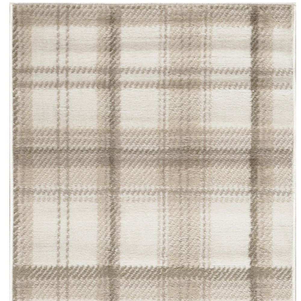 plaid power loom runner rug, loom runner rug, power loom runner rug, ivory plaid power loom runner, beige ivory plaid power loom |