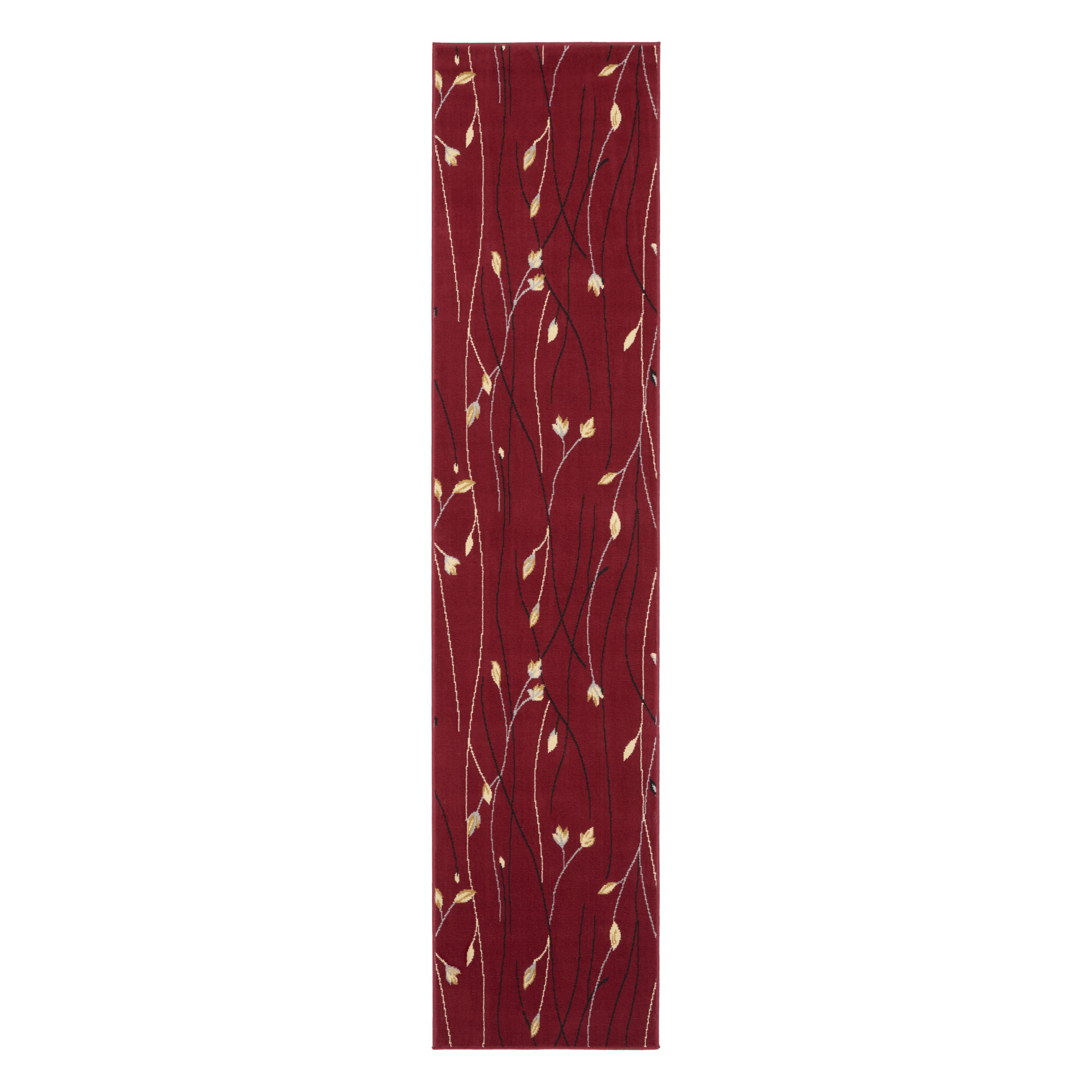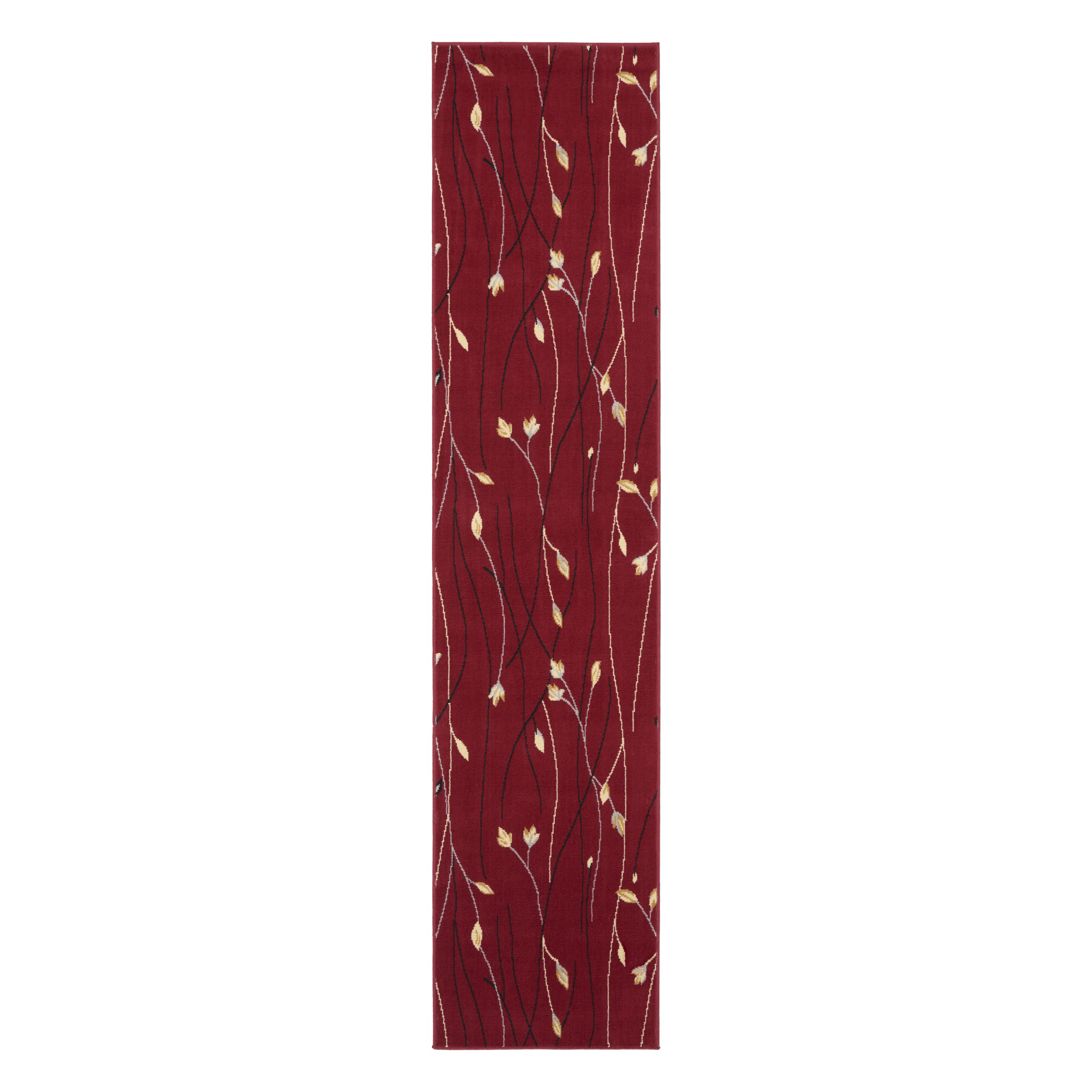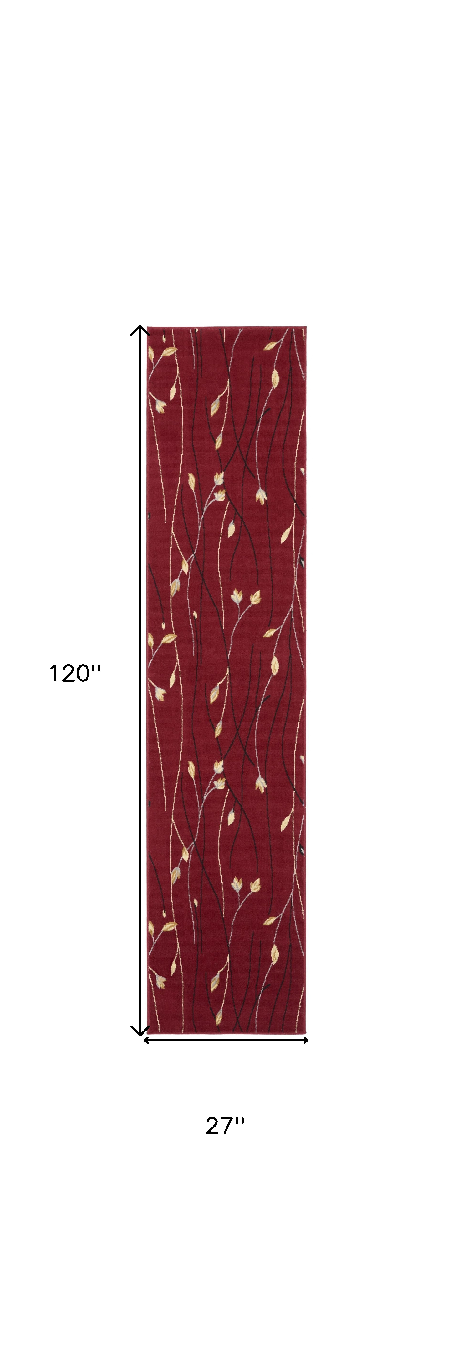 This 10-foot red floral runner rug, is a great way to add warmth to a room. Built to last, this rug crafted from polypropylene fibers is known for its durability and long lasting appeal. Rugs are a great way to showcase your style, hide imperfections, warm your home and reduce noise. This rectangular shaped rug features a abstract design that will add a functional and decorative accent to your space. This contemporary style runner makes a great accent for the hallway, in front of cabinets, in the laundry room, or any other space you need a narrow and long rug. 27-inch h x 120-inch w x 0.5-inch d.