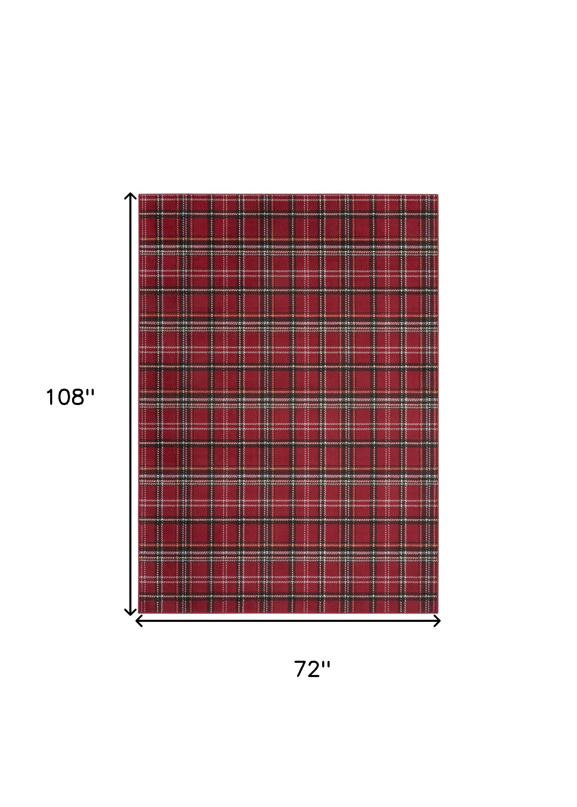 Add some artistry to your room with this 6-foot x 9-foot red and black plaid power loom area rug. This rectangle shaped rug features a plaid design in red and black to give it visual interest. A classic shape marries with good looking design for your space place this area rug against a hardwood or tile floor and it will enliven your living space with style and sophistication. 72-inch H x 108-inch W x 0.5-inch D
