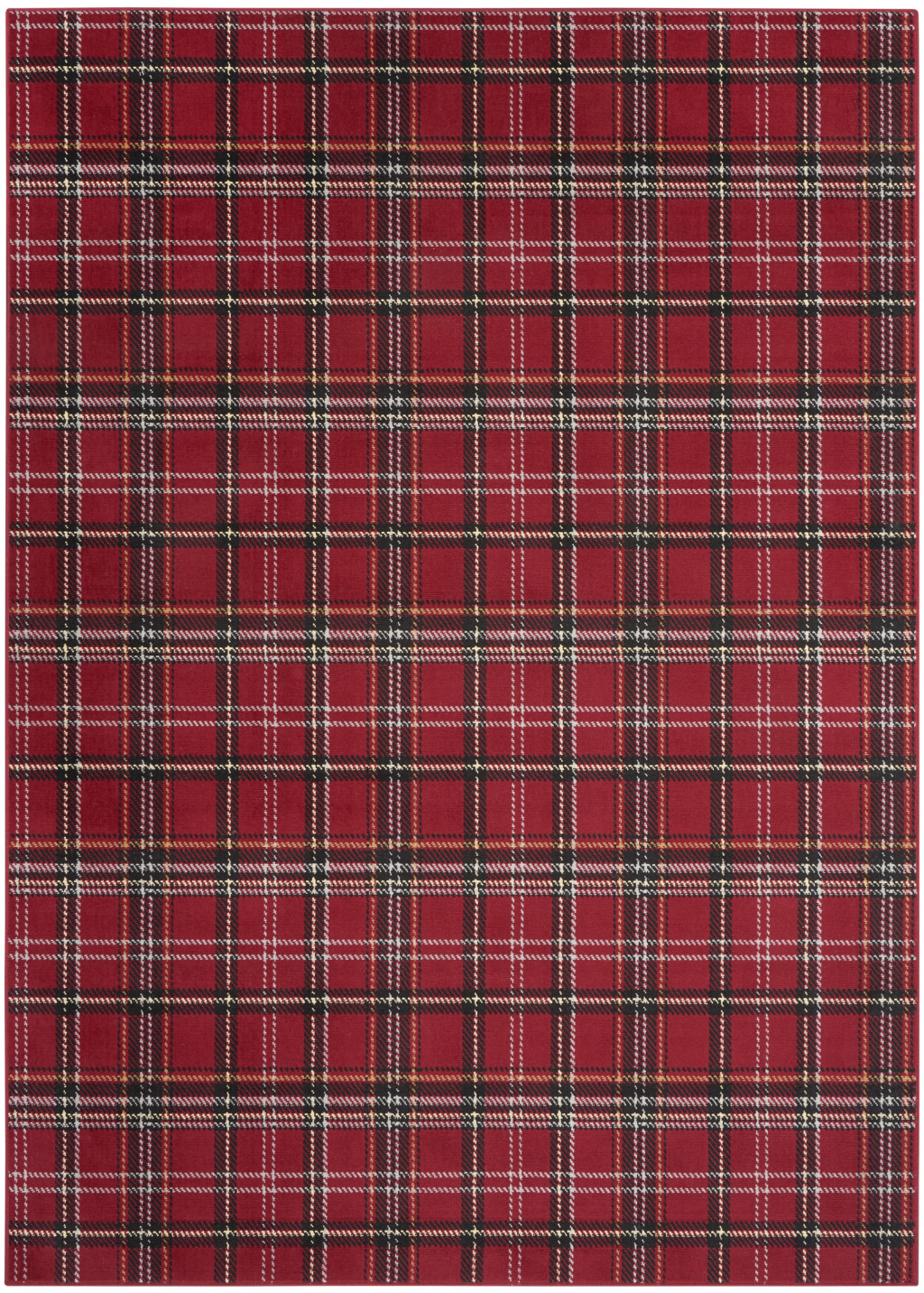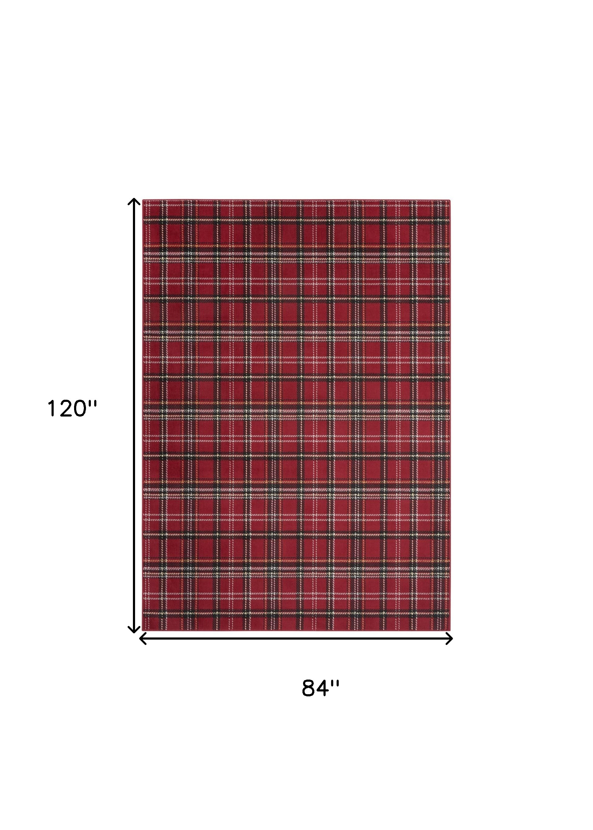 Add some artistry to your room with this 7-foot x 10-foot red and black plaid power loom area rug. This rectangle shaped rug features a plaid design in red and black to give it visual interest. A classic shape marries with good looking design for your space place this area rug against a hardwood or tile floor and it will enliven your living space with style and sophistication. 84-inch H x 120-inch W x 0.5-inch D