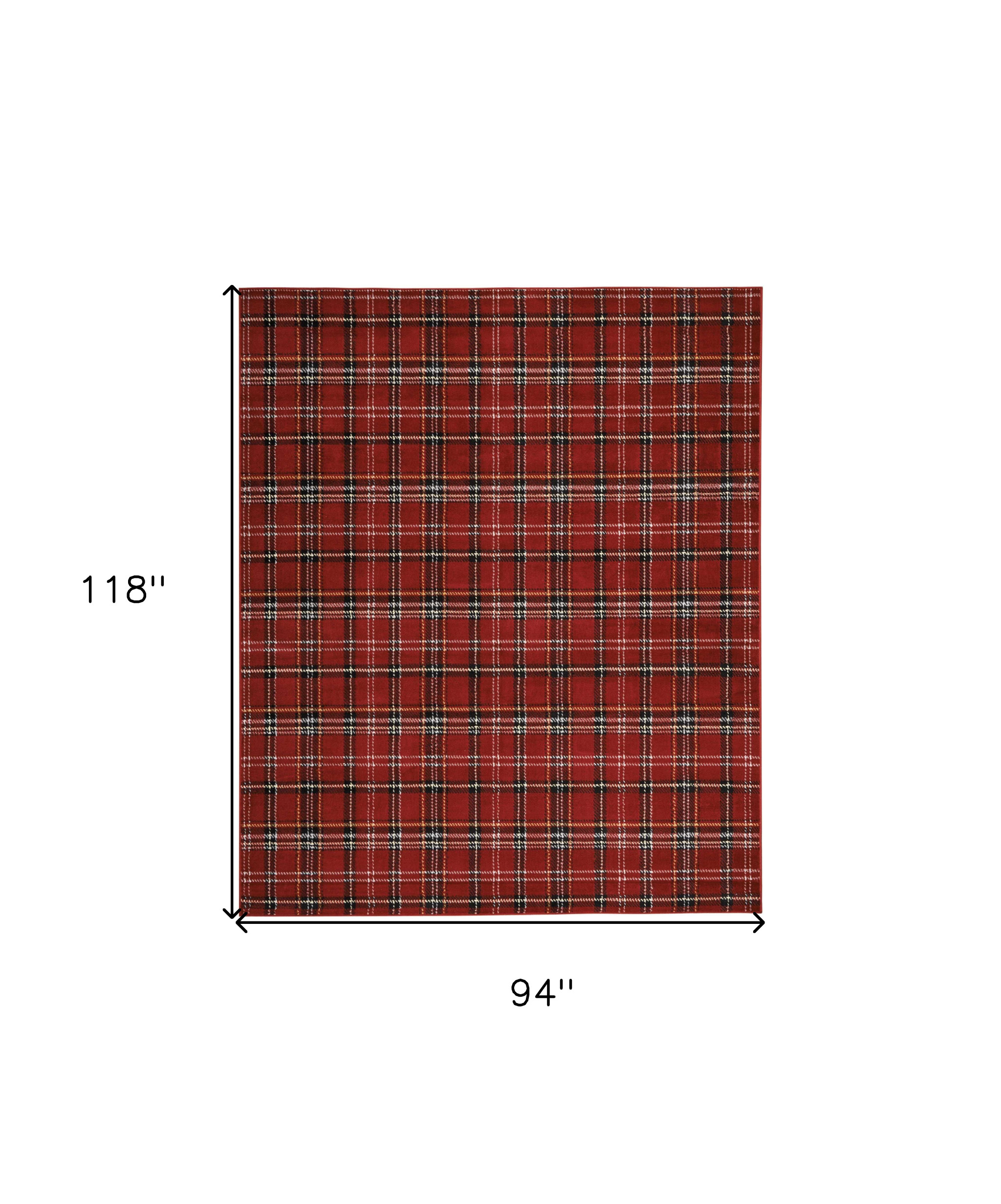 Add some artistry to your room with this 8-foot x 10-foot red and black plaid power loom area rug. This rectangle shaped rug features a plaid design in red and black to give it visual interest. A classic shape marries with good looking design for your space place this area rug against a hardwood or tile floor and it will enliven your living space with style and sophistication. 94-inch H x 118-inch W x 0.5-inch D