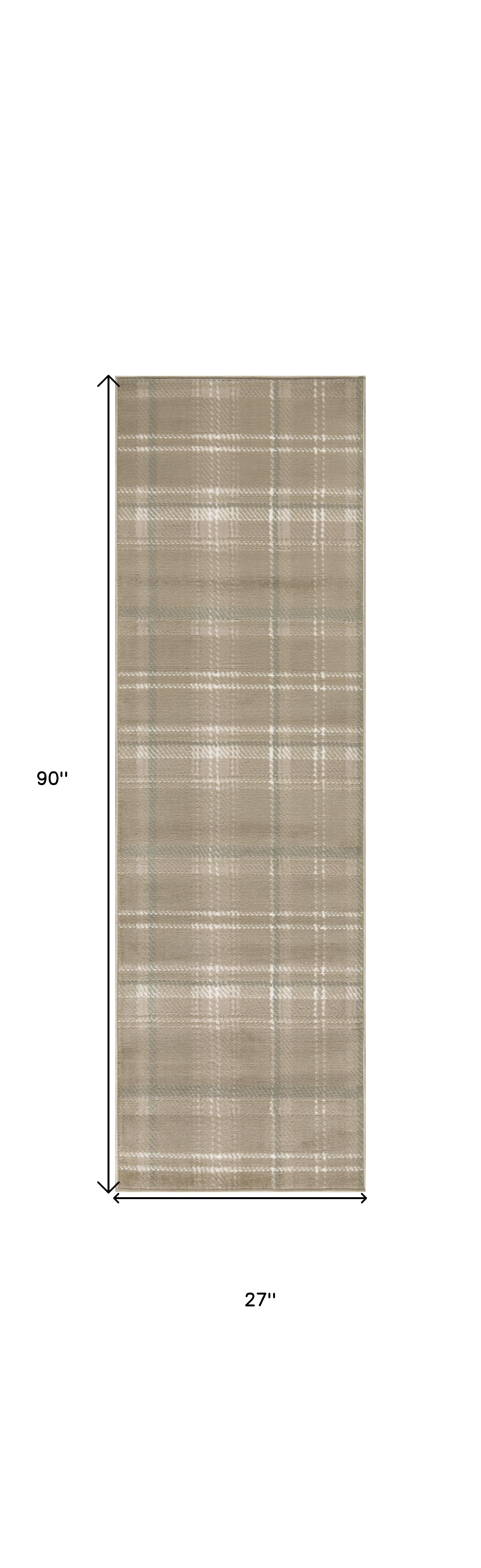 Set an inviting tone in your space with this 8-foot brown and ivory plaid runner rug. Built to last, this rug crafted from polypropylene fibers is known for its durability and long lasting appeal. Rugs are a great way to showcase your style, hide imperfections, warm your home and reduce noise. This rectangular shaped rug features a abstract design that will add a functional and decorative accent to your space. This cottage style runner makes a great accent for the hallway, in front of cabinets, in the laundry room, or any other space you need a narrow and long rug. 27-inch h x 90-inch w x 0.5-inch d.