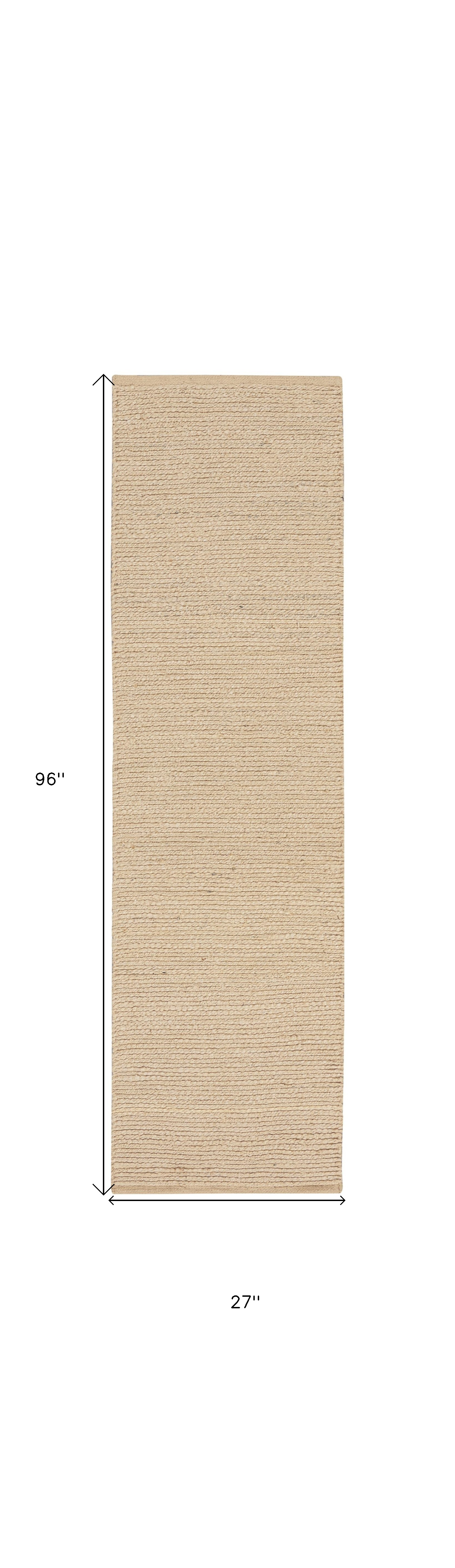 This 8-foot natural jute flatweave handmade runner rug, is a great way to add warmth to a room. Crafted from jute fibers that give this piece premium texture, refinement, and appeal. Rugs are a great way to showcase your style, hide imperfections, warm your home and reduce noise. This runner shaped rug flaunts a natural color that will be a great way to accent your space. Solid colors are versatile and will blend with any existing decor style. This cottage styled runners makes a great accent for the hallway, in front of cabinets, in the laundry room, or any other space you need a narrow and long rug. 27-inch h x 96-inch w x 0.5-inch d.